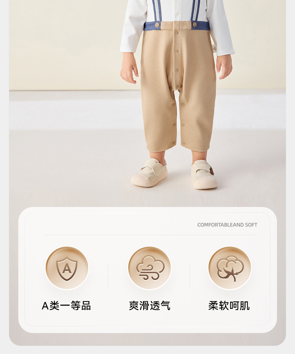 【商场同款】英氏婴儿衣服春夏假两件男宝长袖连体衣2025新款爬服