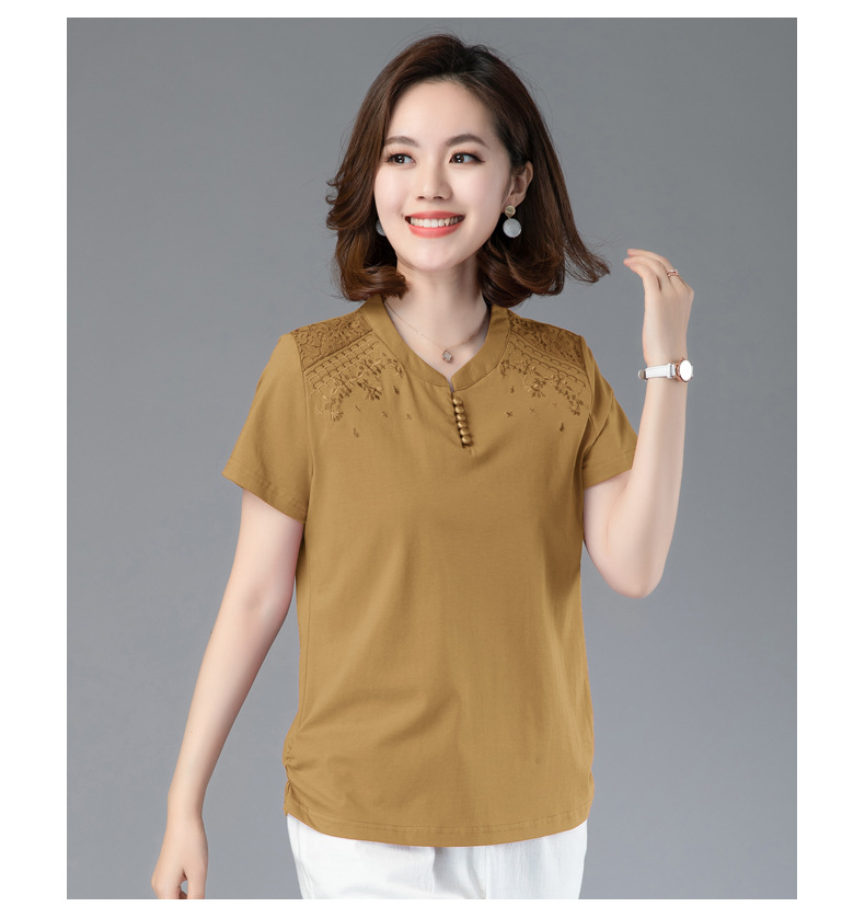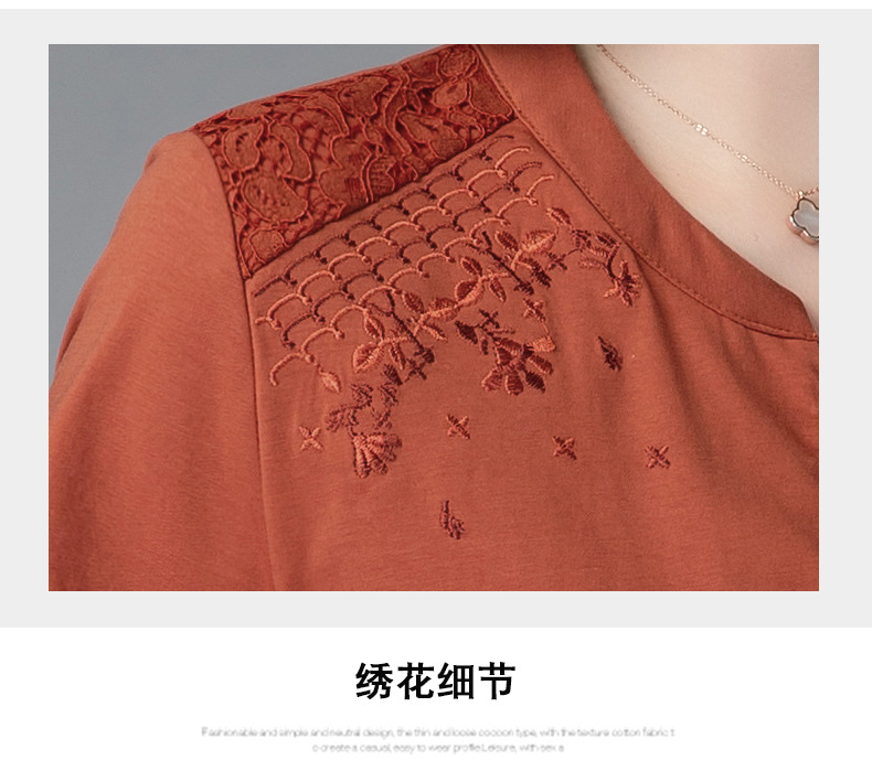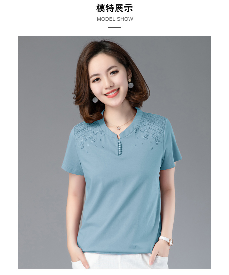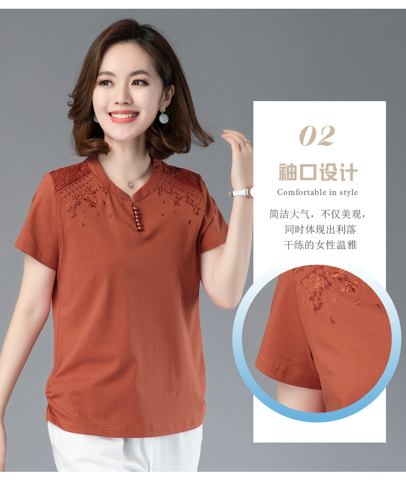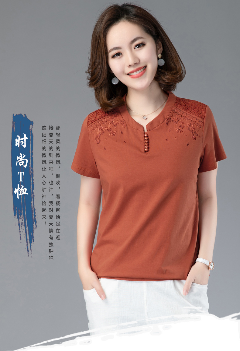 HHC-20135夏新款妈妈洋气时尚百搭纯棉绣花T恤上衣