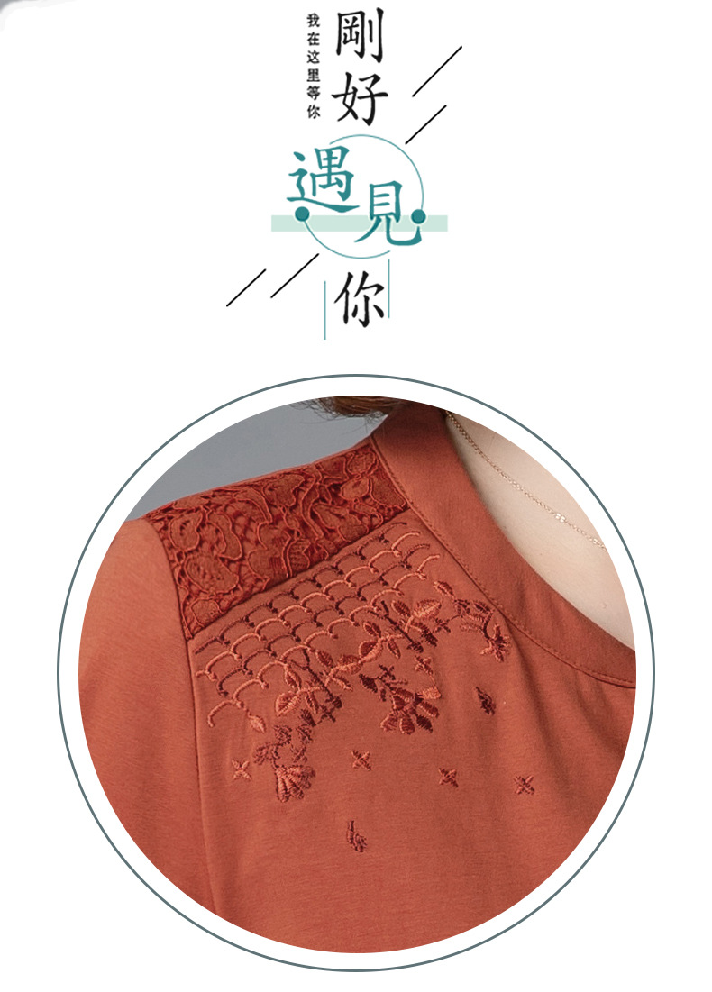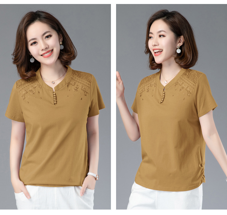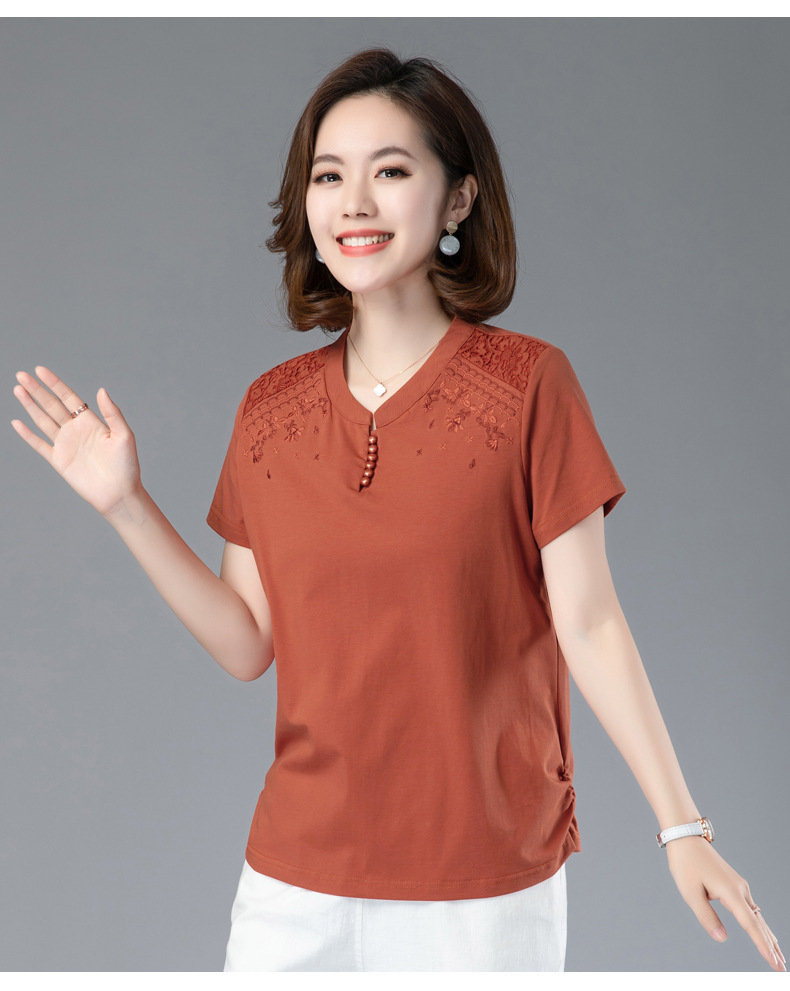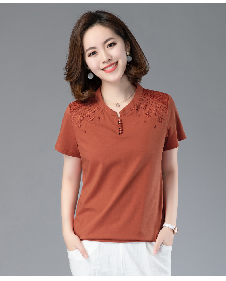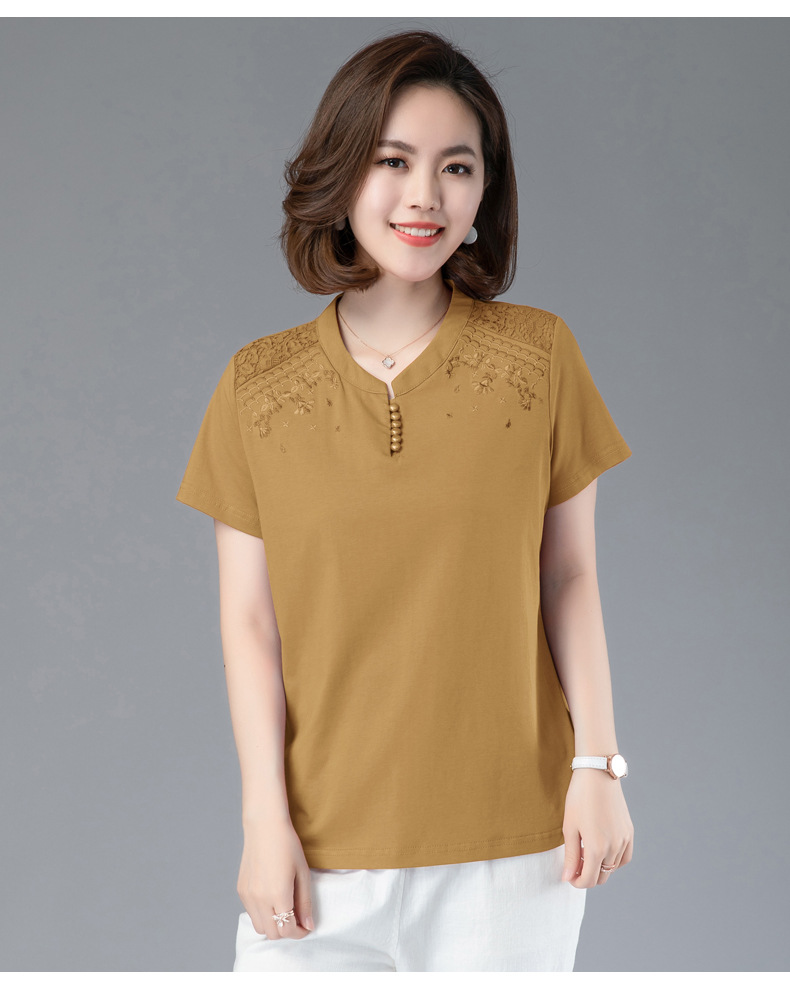 HHC-20135夏新款妈妈洋气时尚百搭纯棉绣花T恤上衣
