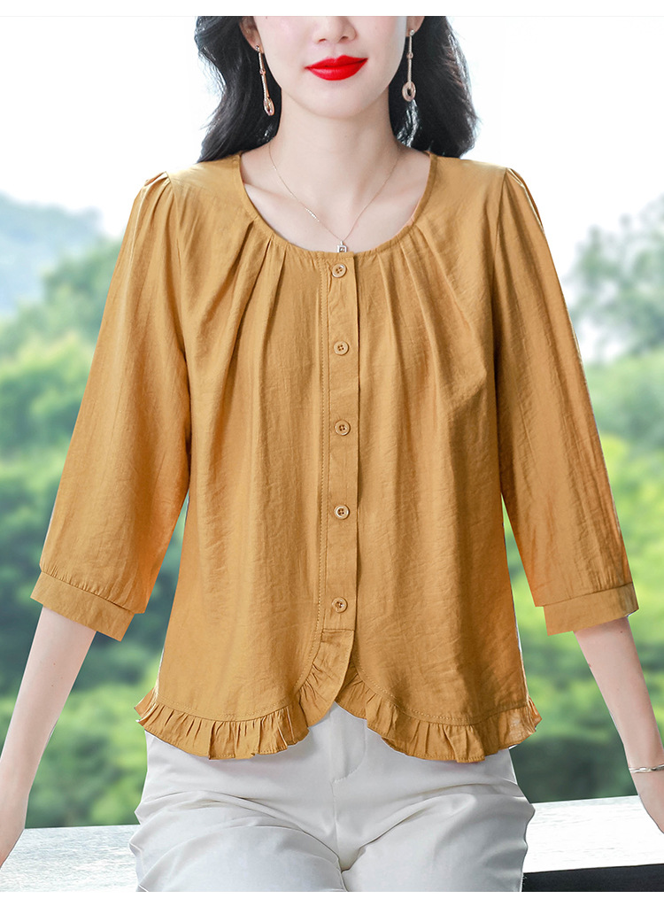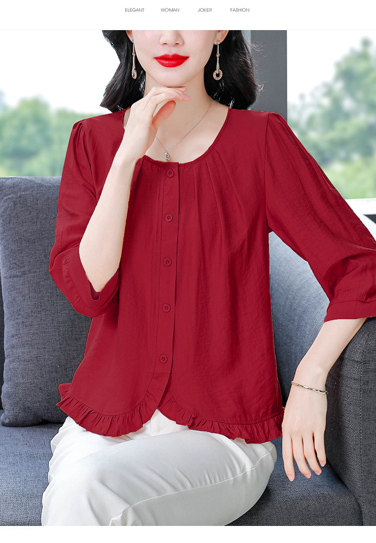 KQL B41N9920七分袖上衣宽松大码小衫显瘦妈妈装