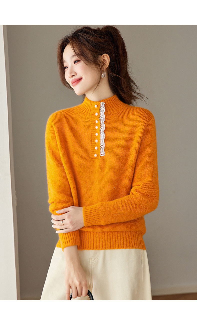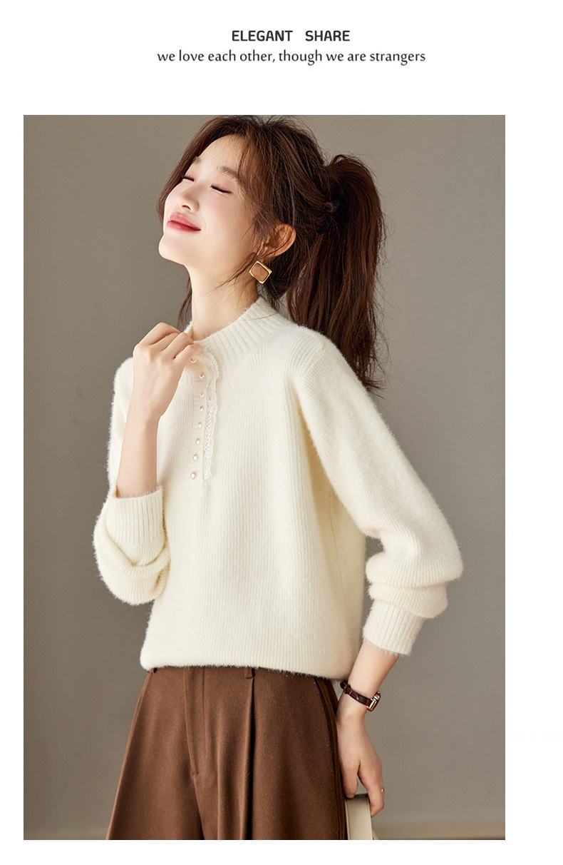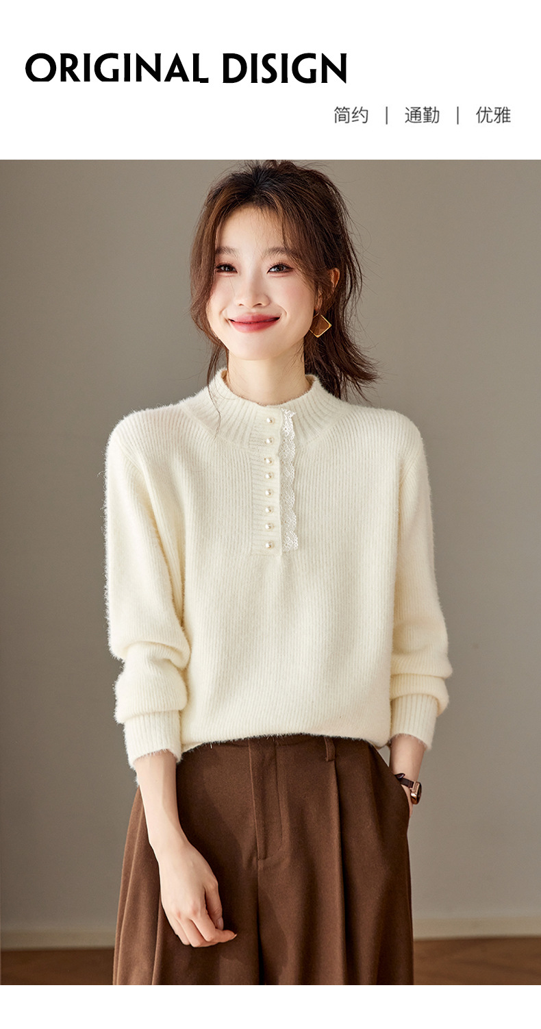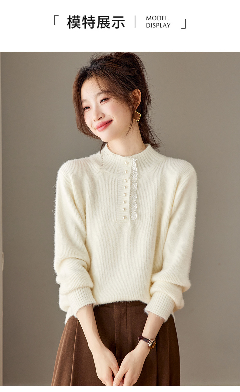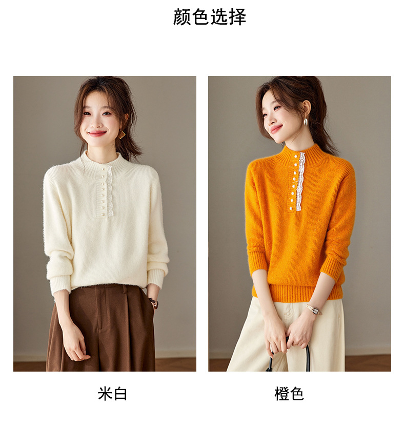CC 2213蕾丝边打底衫厚款半高领大码小衫漂亮