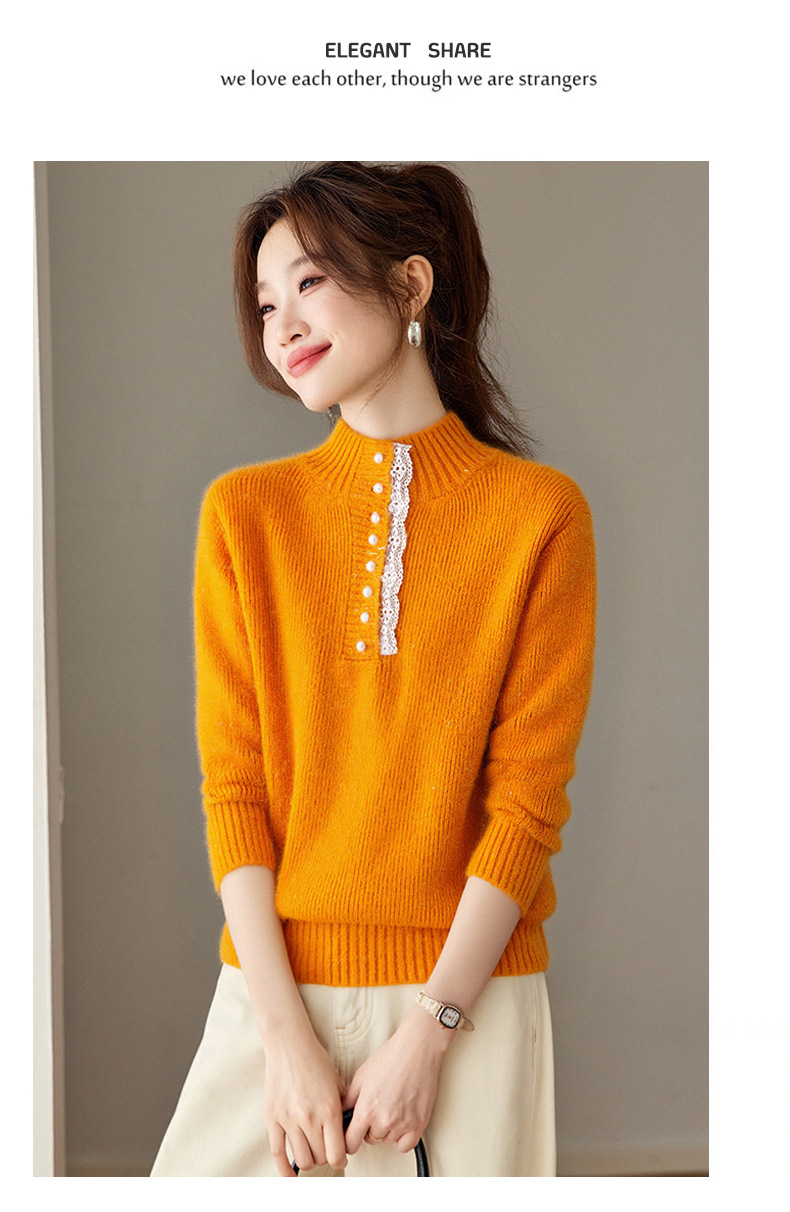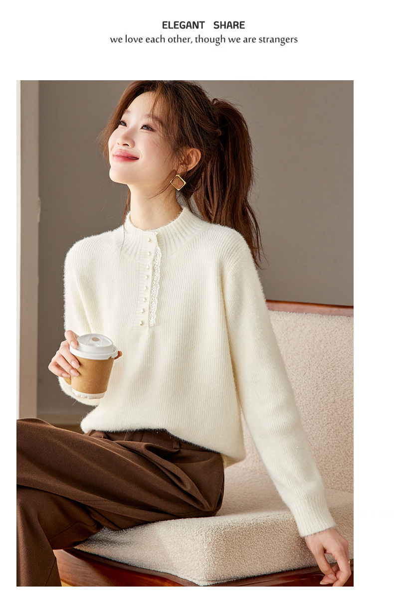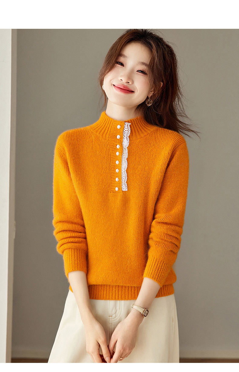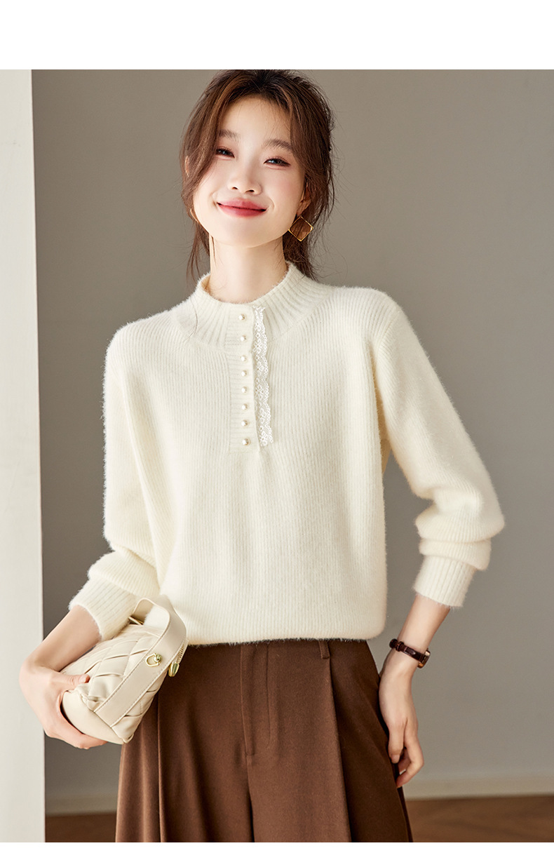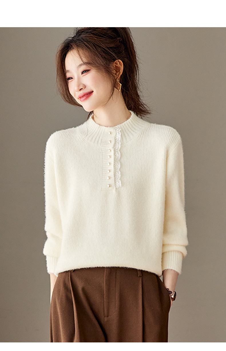CC 2213蕾丝边打底衫厚款半高领大码小衫漂亮