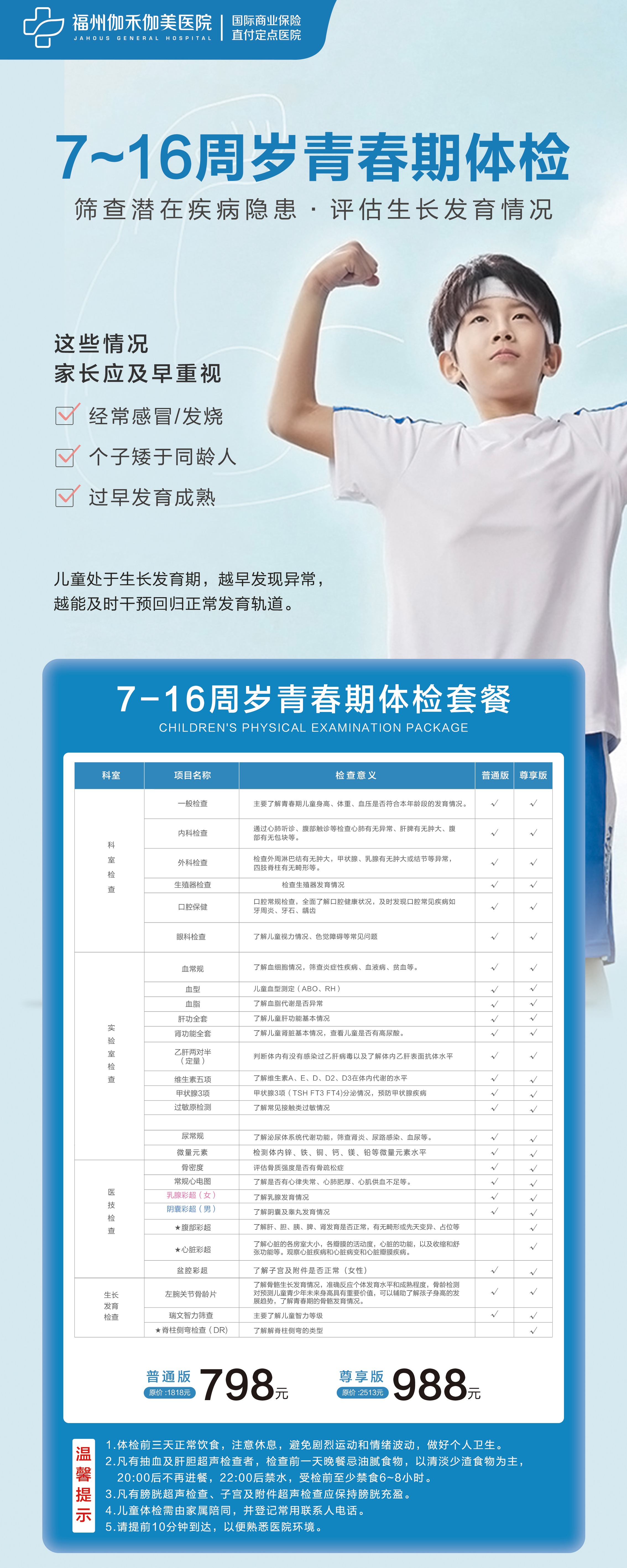 儿童体检采取预约制,购买套餐后,请提前致电0591-86277123预约或联系线上客服预约排期