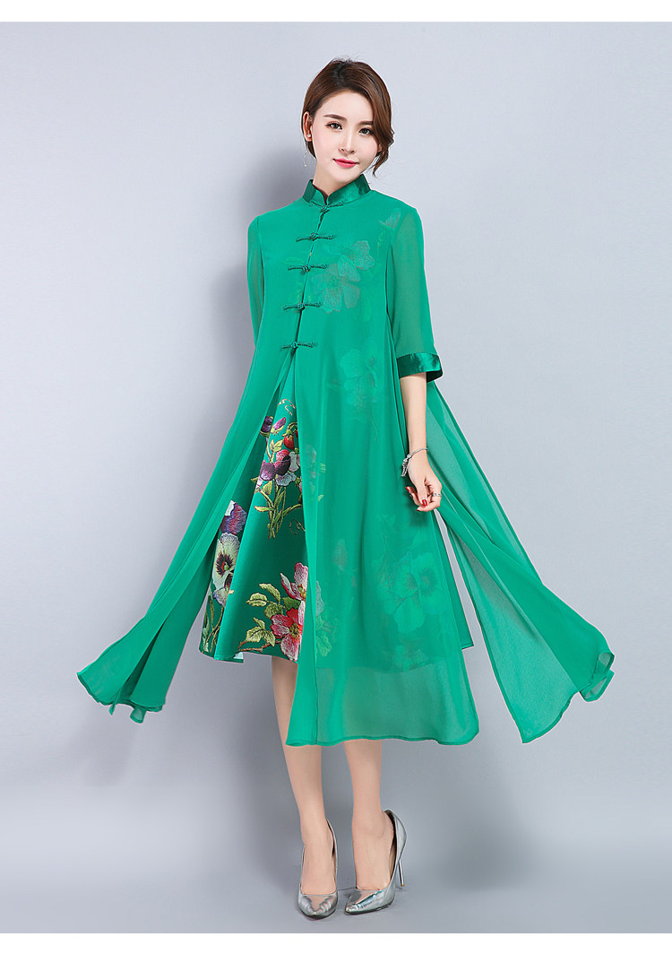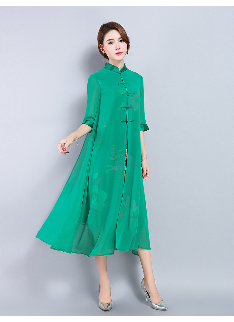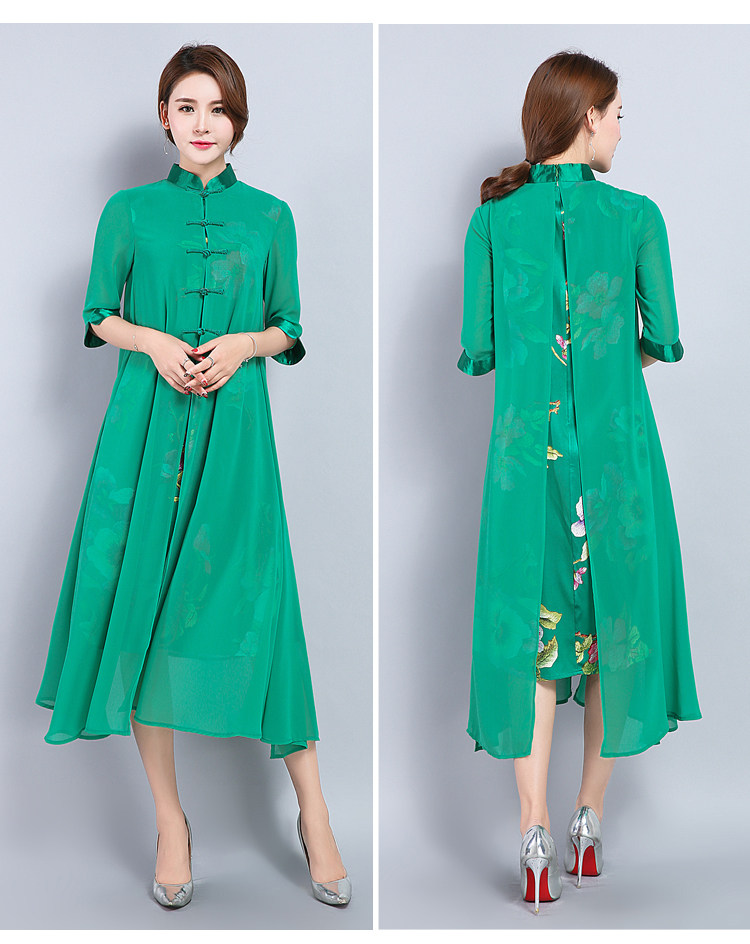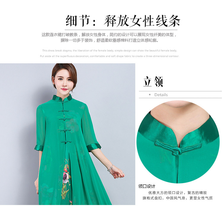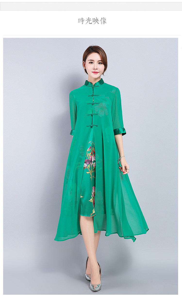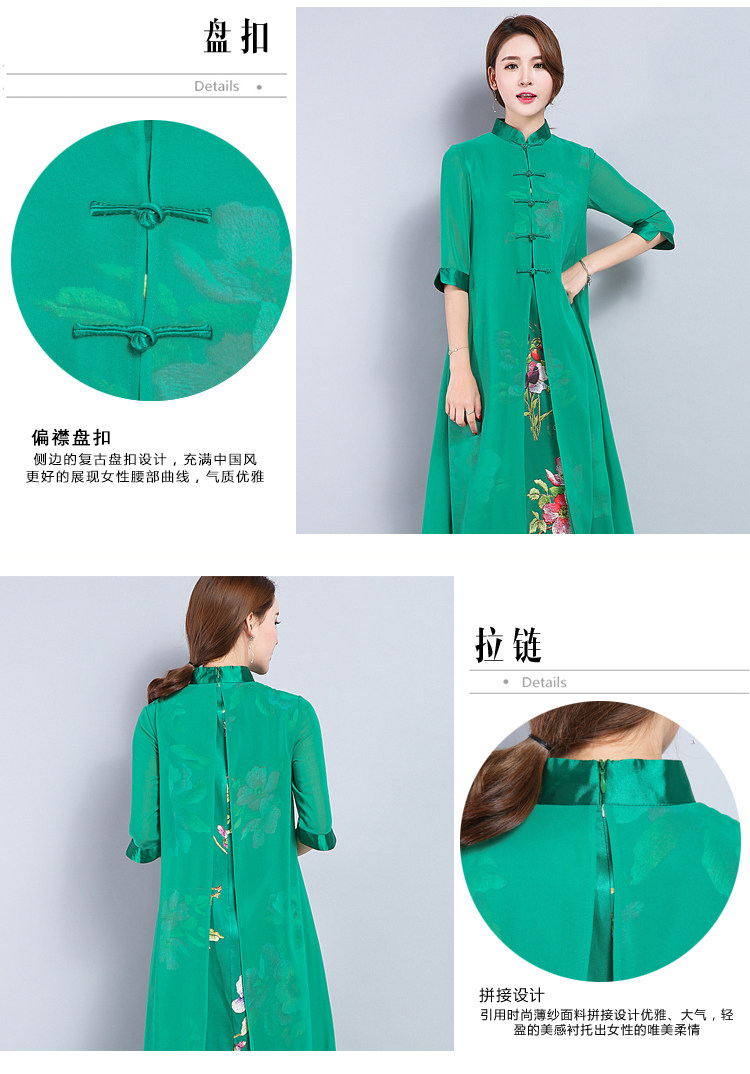 ZA梨花落 新款复古改良中式丝绸长款旗袍