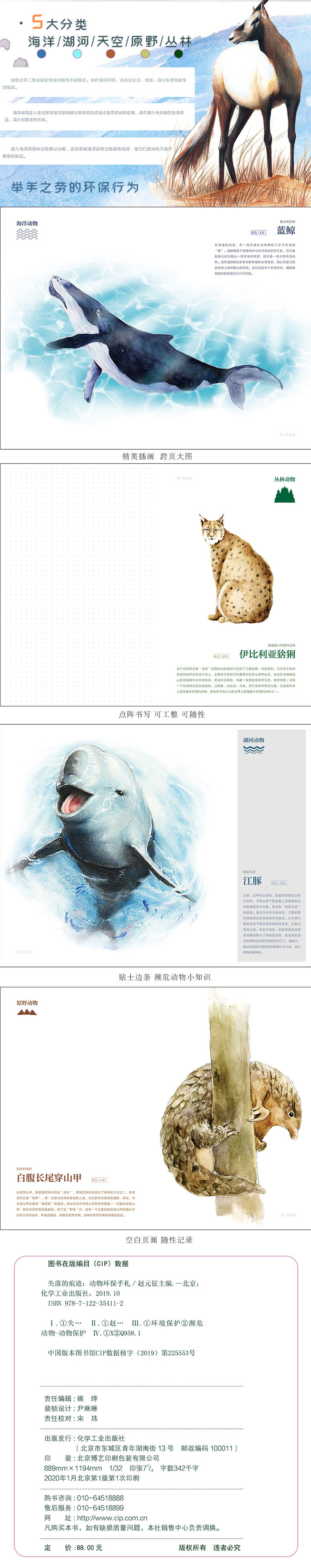 本书以精美的插画和小知识介绍了54种濒危动物,让读者了解濒危动物现状,了解它们对生态的影响,参与环保行为,了解环保的意义,积极执行垃圾分类,通过身体力行的日常行为保护环境,保护濒危动物。