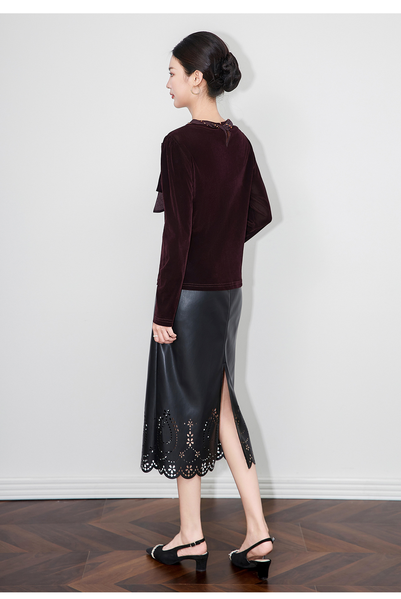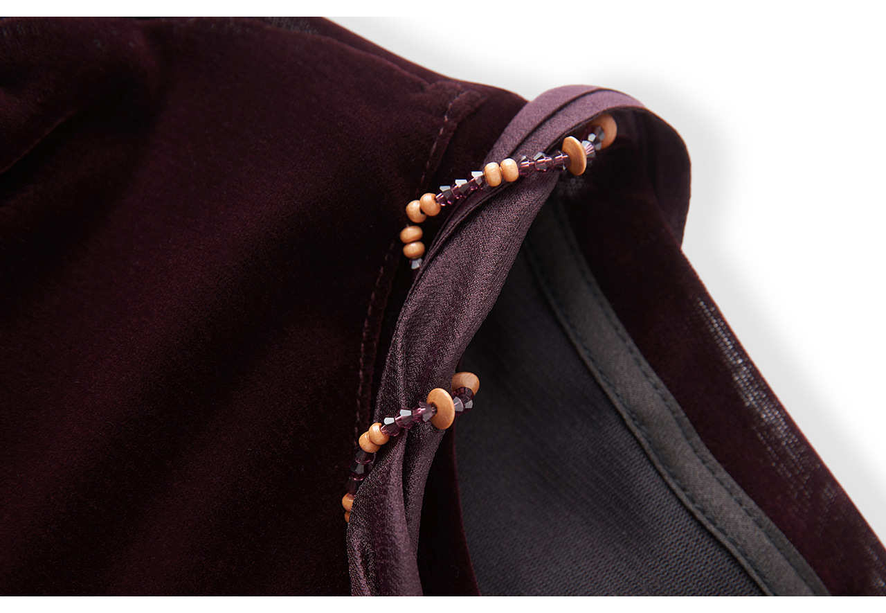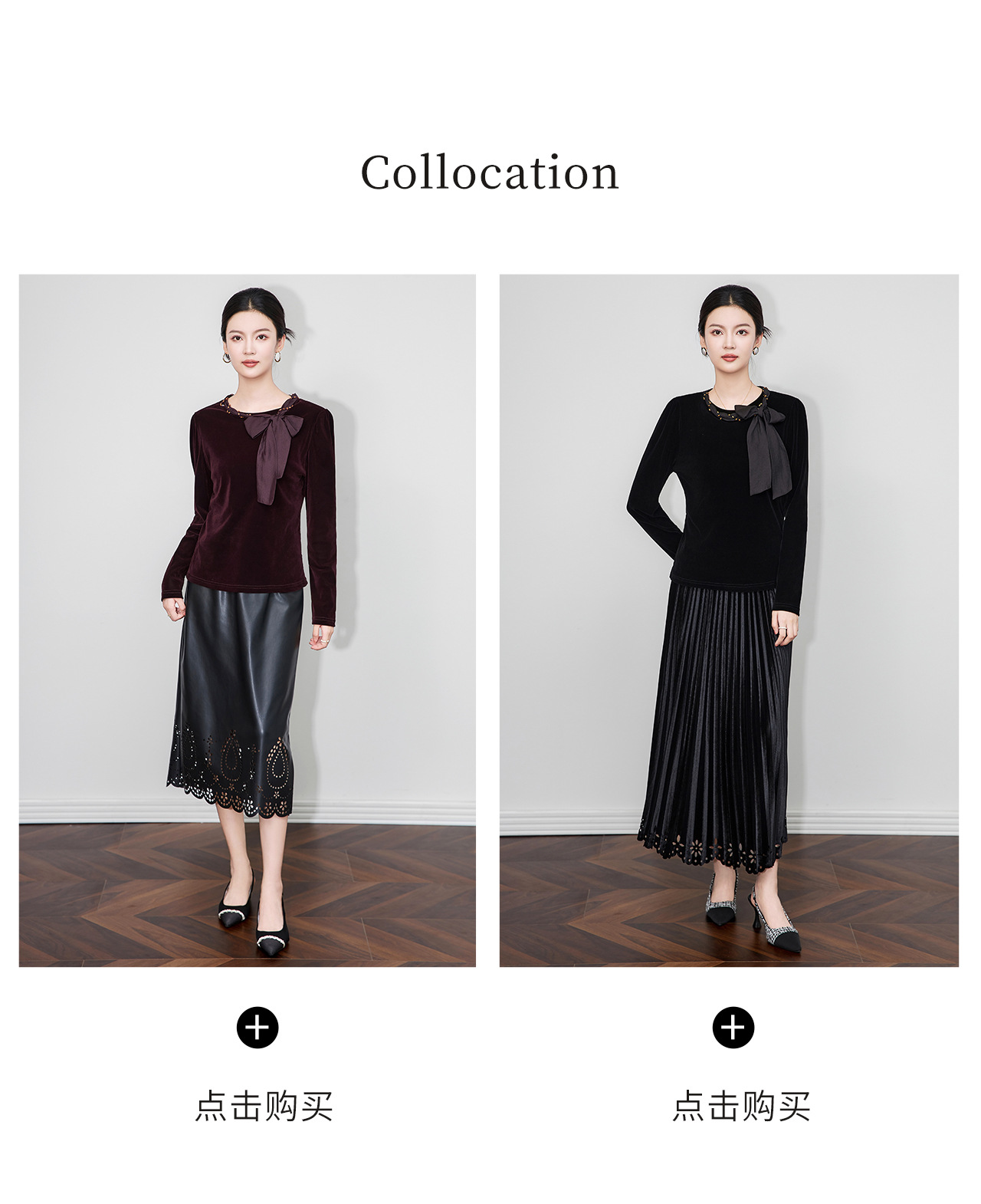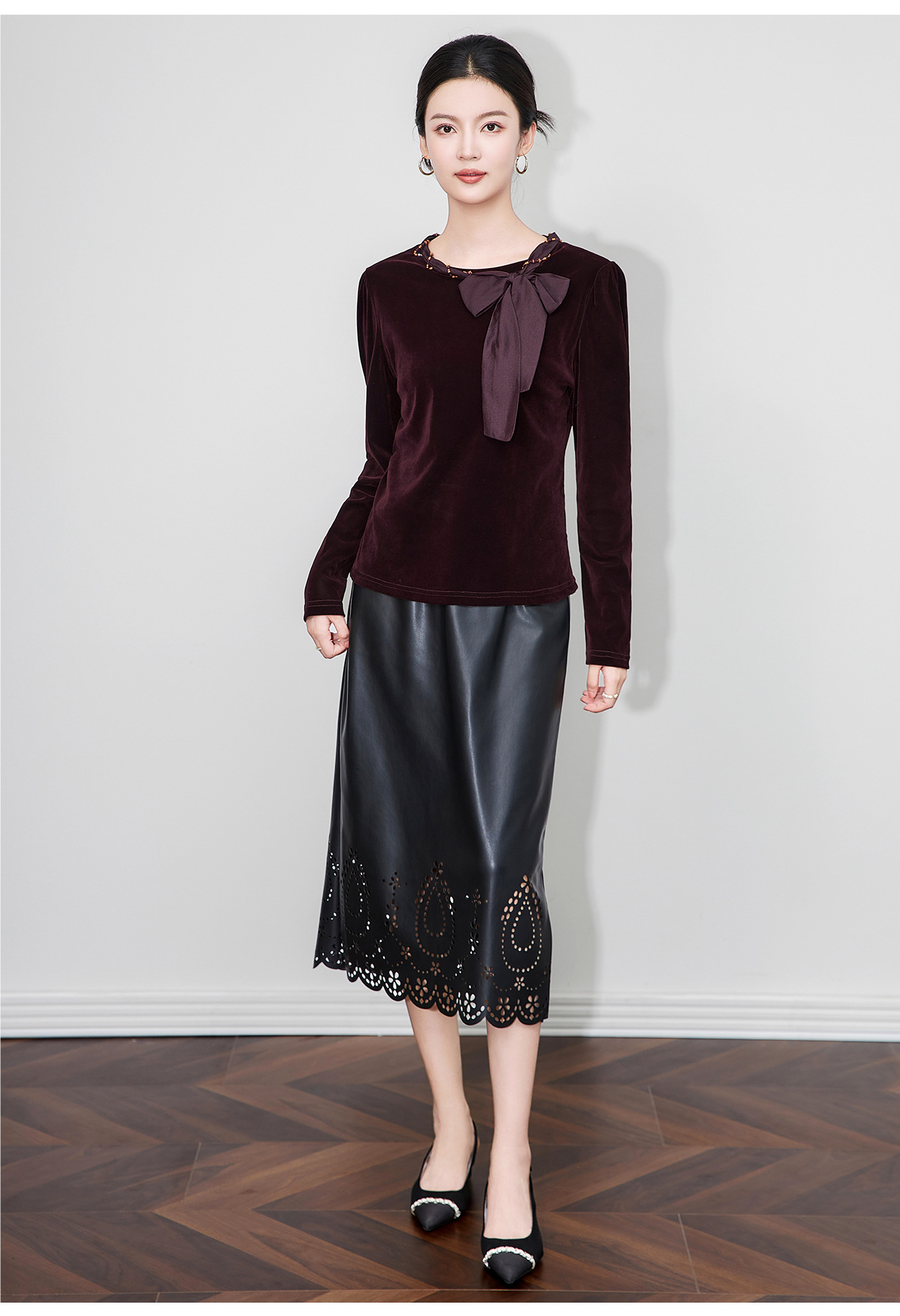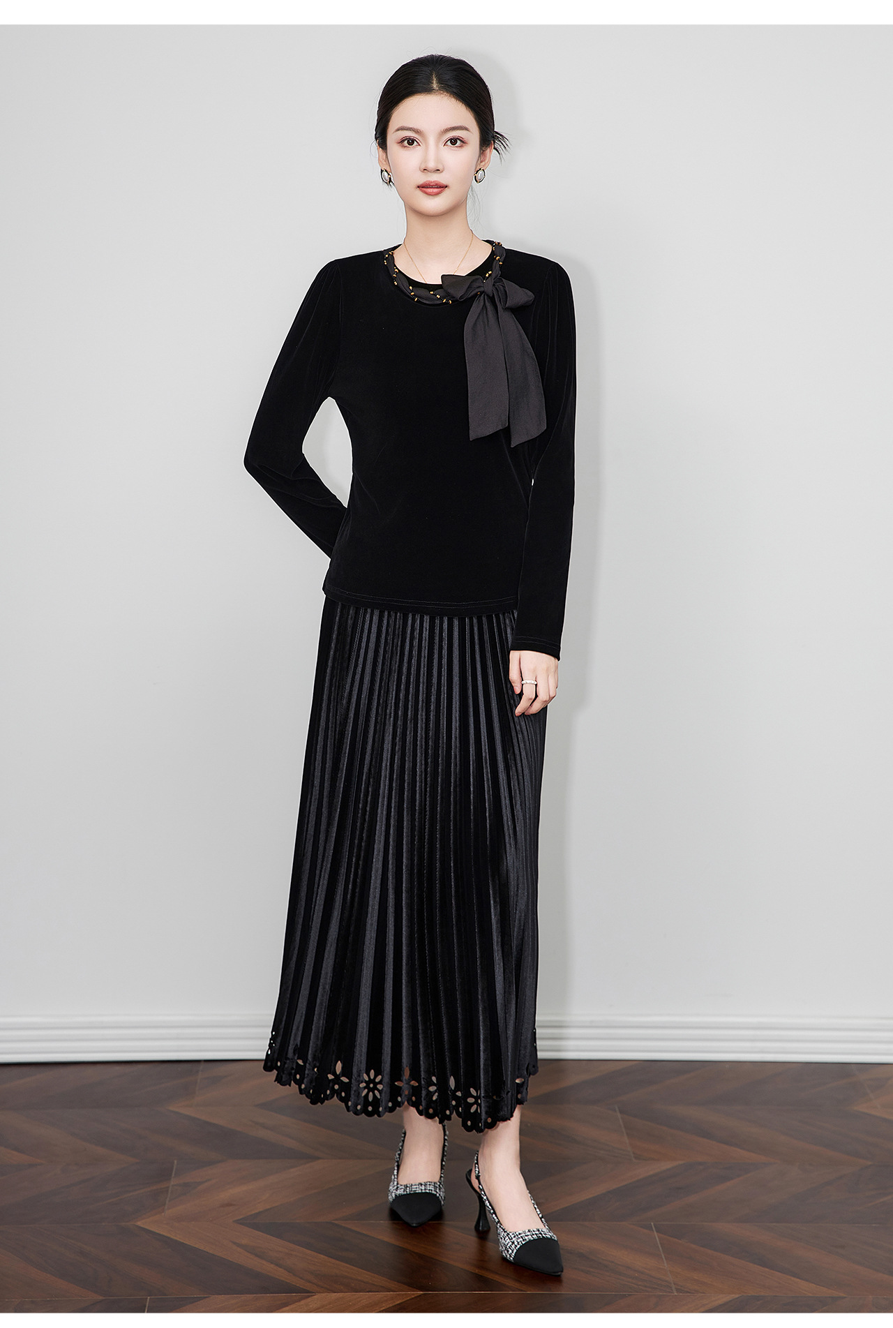 「高货wl」全新升级【铂金会员266/天猫359/差价93】(03804)洛诗琳2025秋季气质链条系脖蝴蝶结飘带修身显瘦丝绒上衣