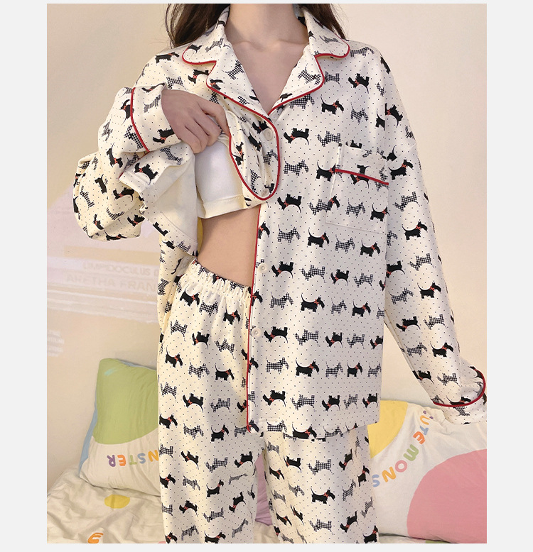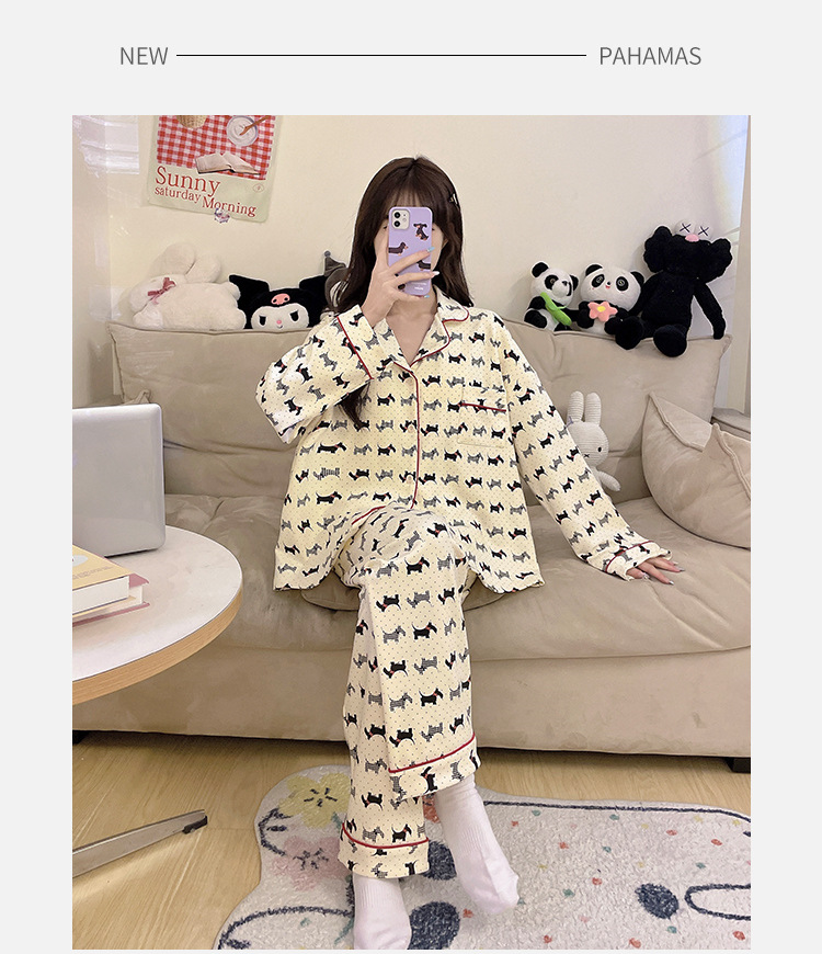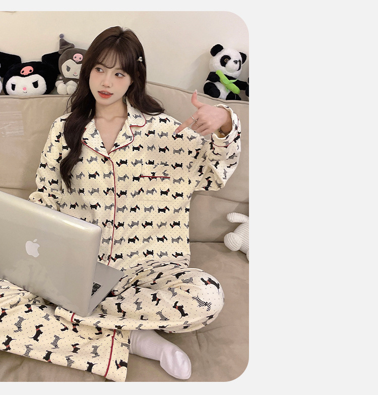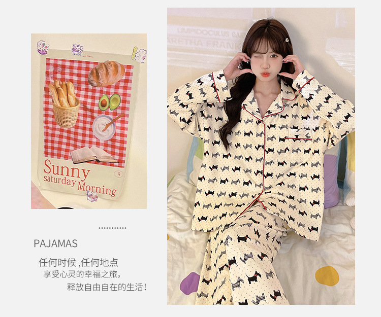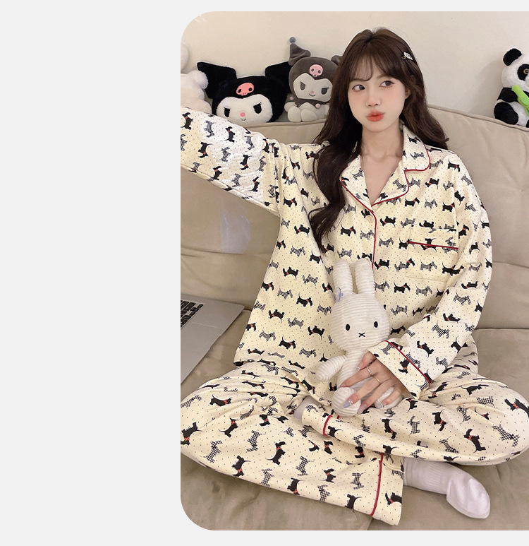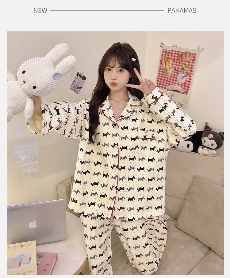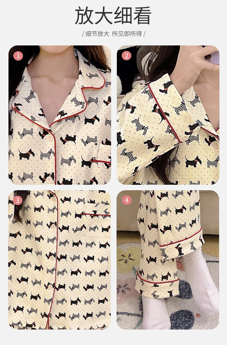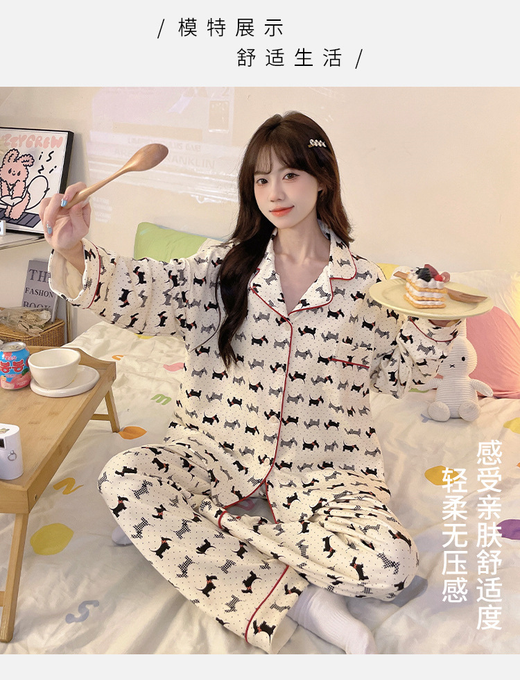 【有氧居家,轻柔软,轻盈到起飞~】新款带胸垫睡衣女 春秋季长袖开衫翻领款 家居服M-3XL 裸感舒适 轻薄透气-QQ