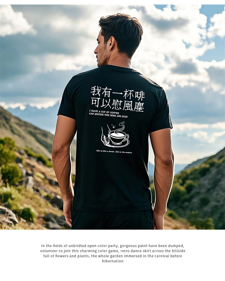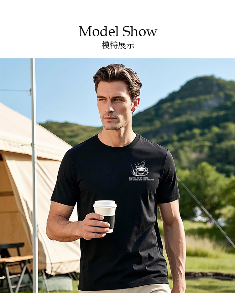 夏户外露营印花短袖T恤男士户外运动风纯棉圆领百搭休闲咖啡文化 NMT-2211