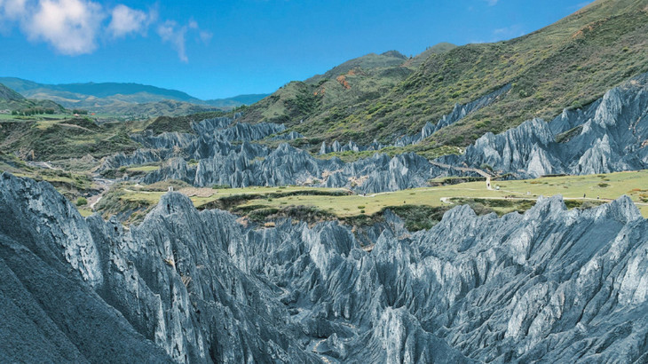 经扎嘎神山,沿途可车览毛垭大草原风光,翻越传说中龟兔赛跑—兔儿山(山势奇特,象兔子耳朵一样,长在草木不生存的山峰上,远远望去,就象兔子受了惊吓,恐惧地注视着你,真是妙不可言),途经青藏高原最大的古冰体遗迹—海子山自然保护区,精妙绝伦的天然岩画—鹿子图腾,经桑堆红草地(红草地为季节性景点,每年九、十月份是拍摄红草地的最佳时节)、稻城尊胜白塔后抵达稻城县(稻城,古名稻坝,意为山谷沟口开阔之地)或香格里拉镇(日瓦)。