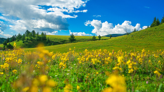 征服塞外屏障【折多山】(海拔4298)后抵达摄影天堂【新都桥】(有一片如诗如画的世外桃源。神奇的光线,无垠的草原,弯弯的小溪,金黄的柏杨,连绵起伏的山峦,错落有致的藏寨,星星点点的牛羊……是令人神往的“光与影的世界”)。