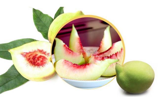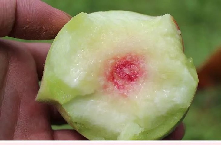 近核部分带红色的连平鹰嘴蜜桃。