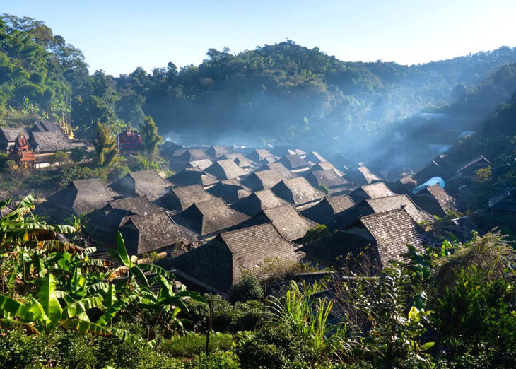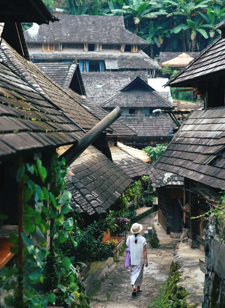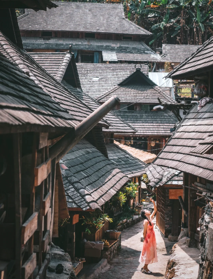 游玩结束后继续往前,来到【景迈山】,这里不仅有2000年种茶历史文化, 更有14个少数民族交融的古村落。 每个寨子不大, 家家户户都在晒茶烤茶, 世世代代生活在这片山坳里的人们, 淳朴的民风, 满脸的笑意, 这应该是遗世景迈最好的名片。我们深入傣族古寨【糯干古寨】。世人只知景迈布朗,但不知道在景迈深处还藏着一个更为古朴原始的傣寨。电影《一点就到家》的取景地之一, 傣族文化的原始古村落。 踏着石阶漫步,阳光透过热带植物的树叶洒在地面上 ,当地婆婆们在路边用炭火烤着土鸡,炊烟袅袅。晚上我们便住进山上景区民宿或客栈,零距离感受山上古寨的清幽与寂静。