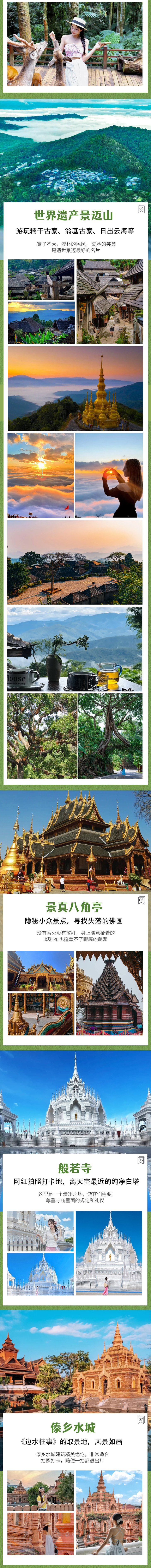 【小众网红】:1)探秘国家级普洱太阳河森林公园,与小熊猫和犀牛等多种可爱珍稀动物来一次亲密互动;2)探秘景迈山芒景参天神树公主榕和蜂王树,和千年古树来一次私密对话;3)前往版纳小众网红点般若寺+傣乡水城,定格一张您的精彩照片~