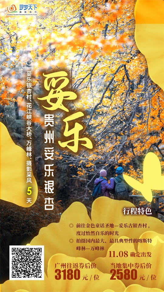 11月8日确定出发西南秋色:秋遇贵州 多彩黔行:妥乐银杏村、花江峡谷大桥、万峰林、摄影采风5天
