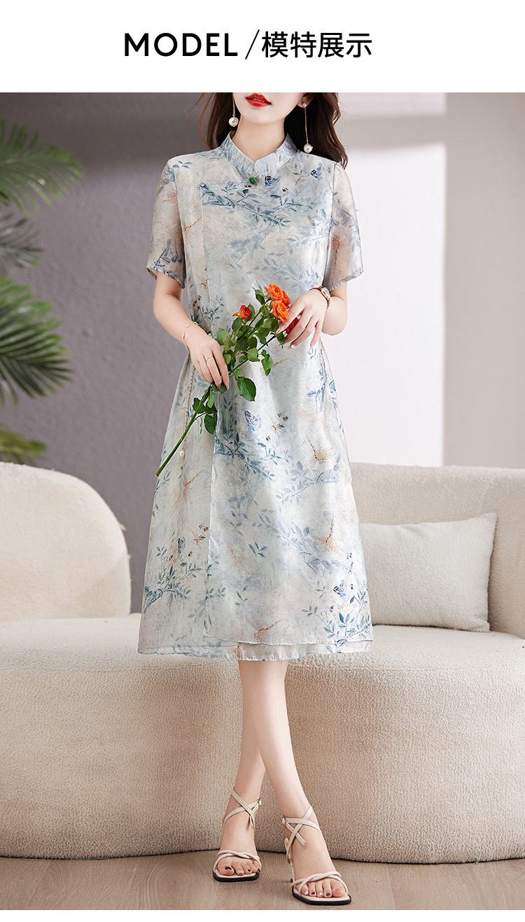 夏装新款,气质盘扣立领时尚复古改良旗袍印花修身显瘦连衣裙HR-WJ83139