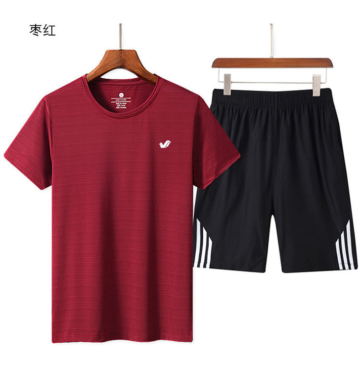 JXG-夏季冰丝速干运动宽松大码休闲短袖套装