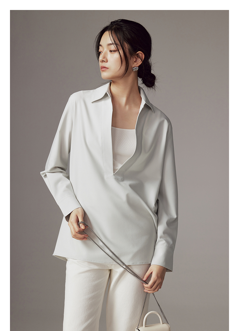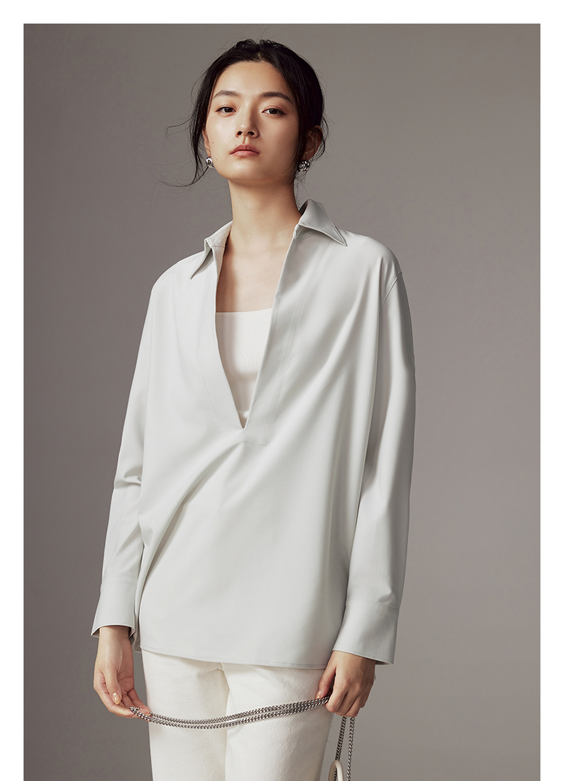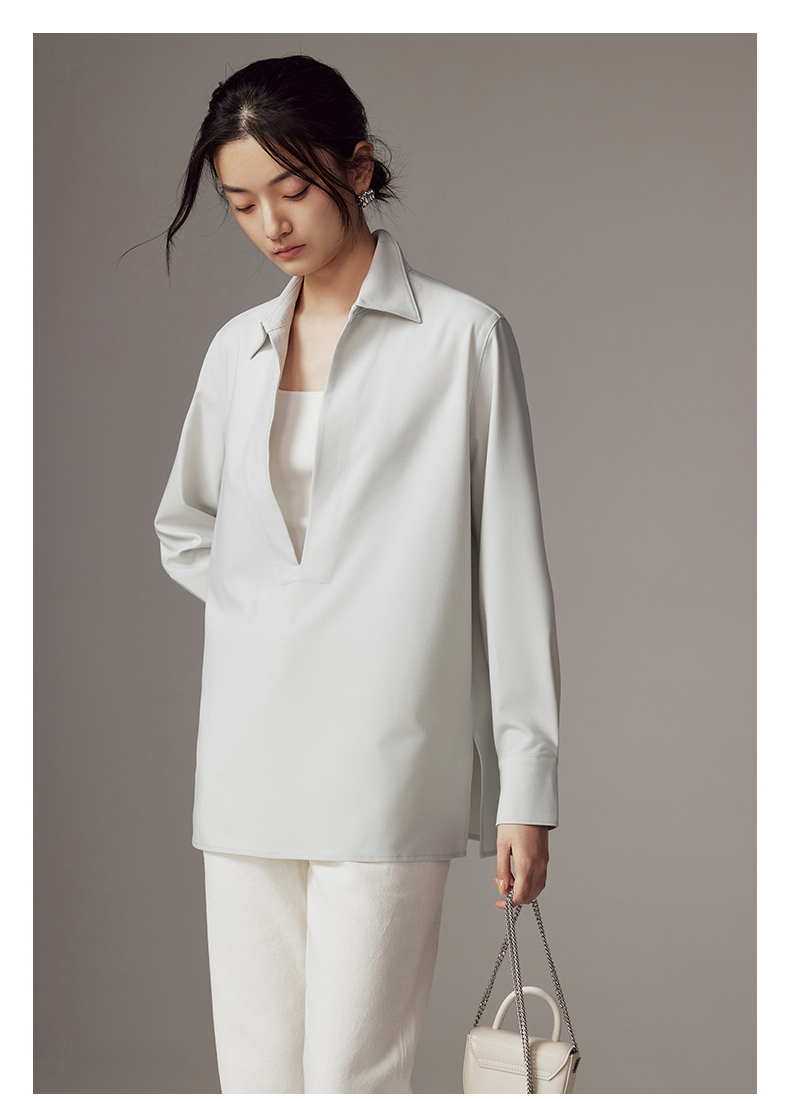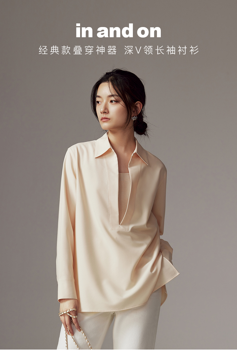 IN AND ON 新款 经典款叠穿神器 深V领长袖衬衫54136