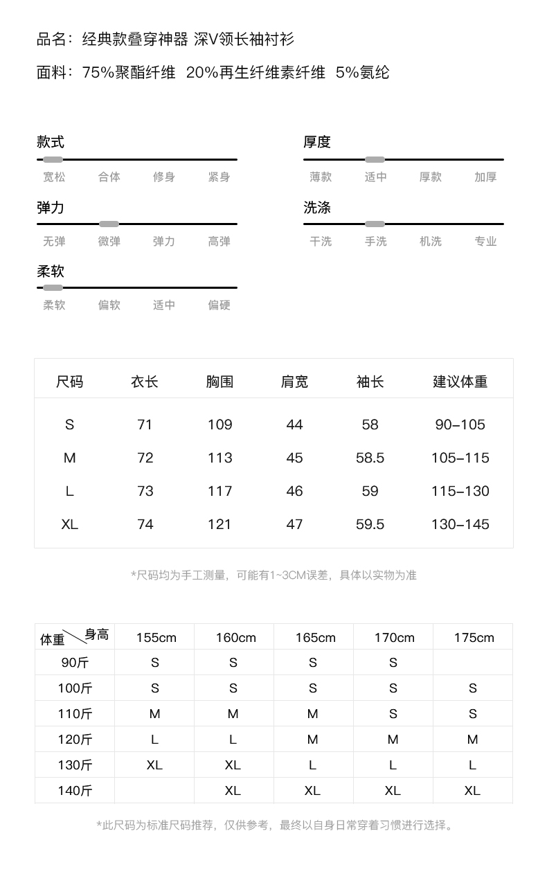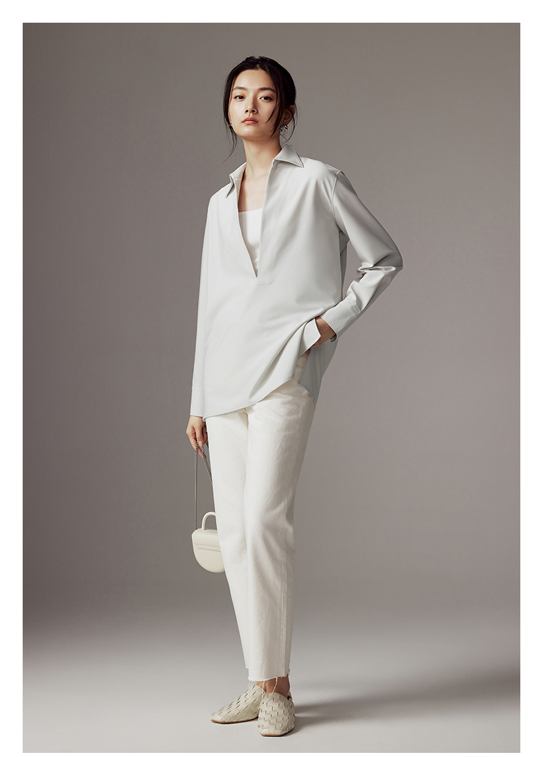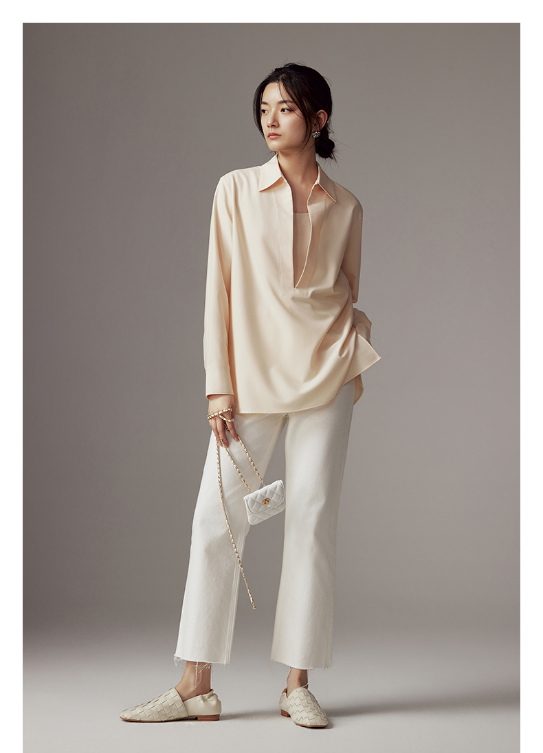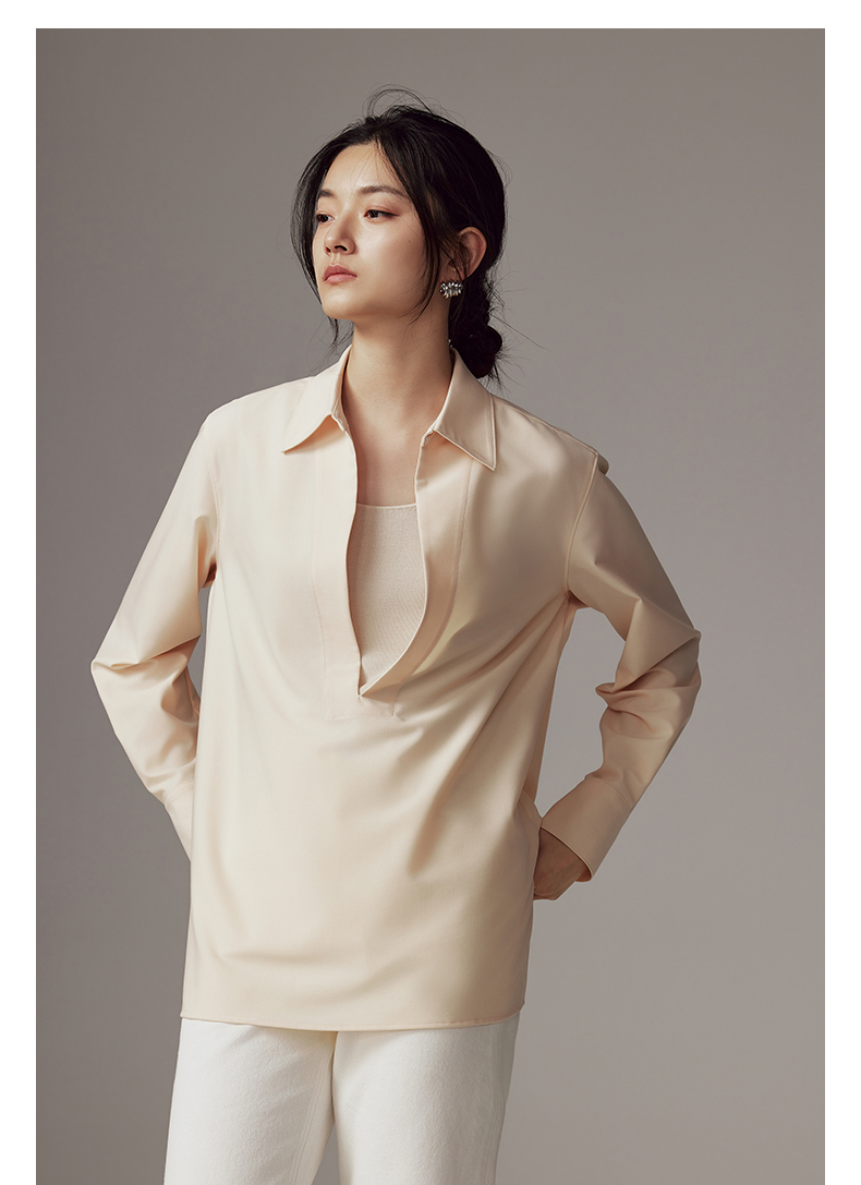 IN AND ON 新款 经典款叠穿神器 深V领长袖衬衫54136