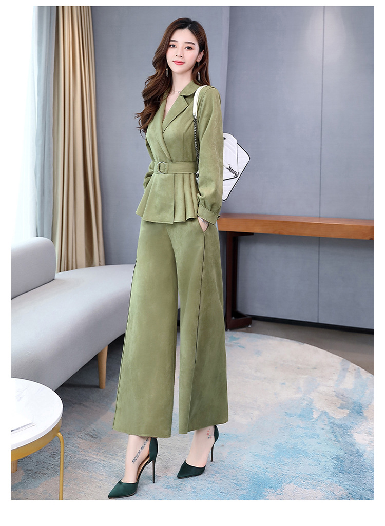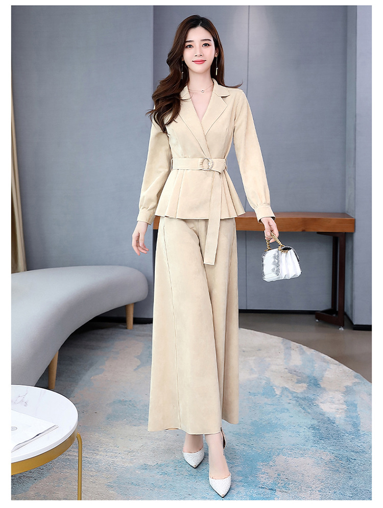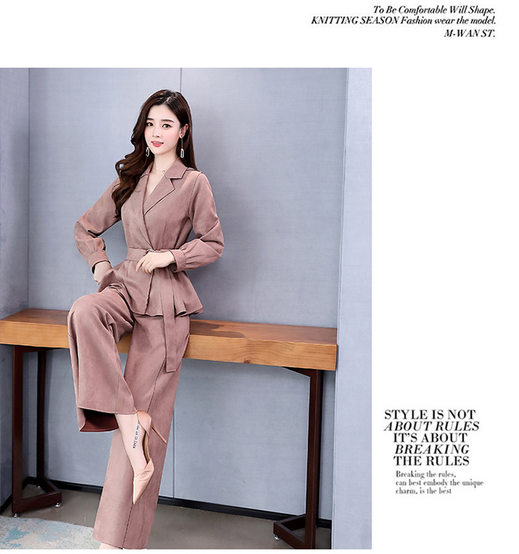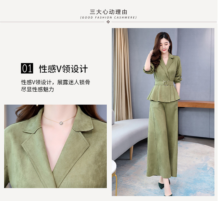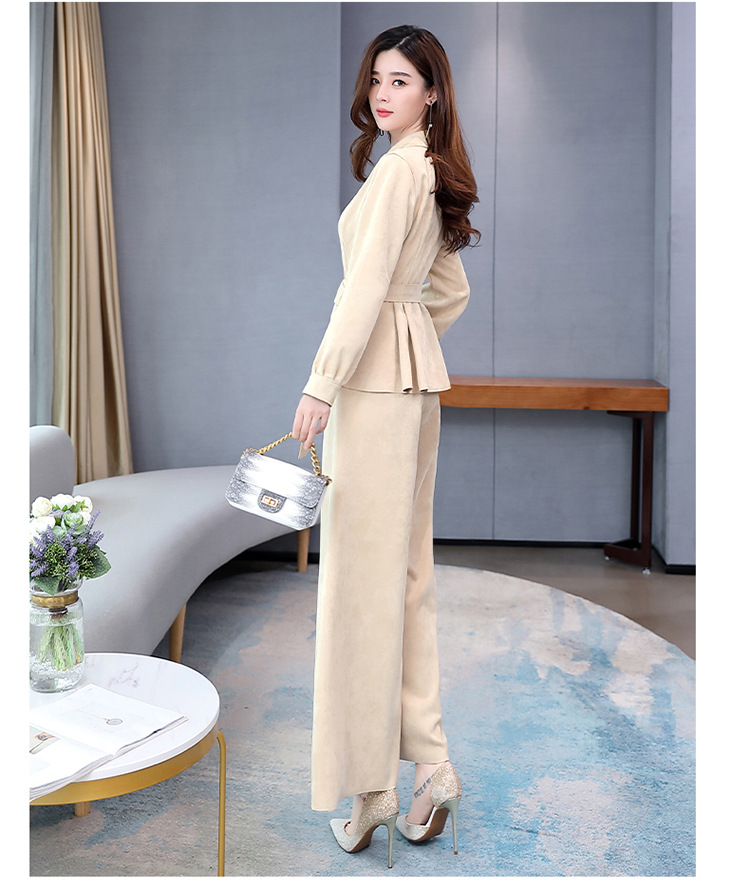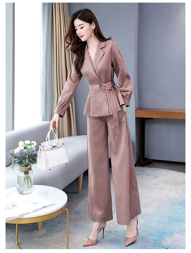 LY-GJ92006春装新款韩版洋气减龄气质百搭鹿皮绒西装两件套