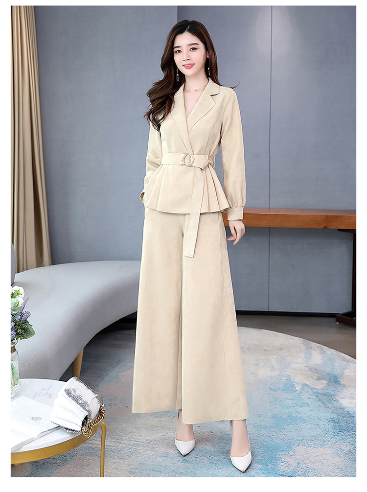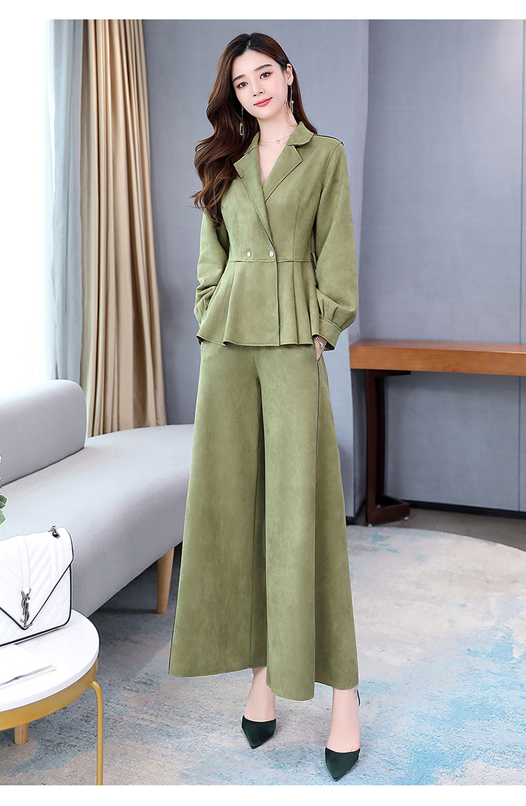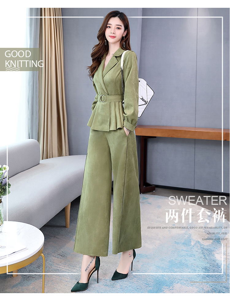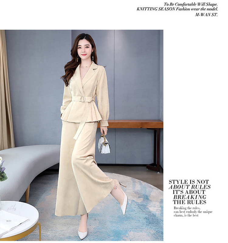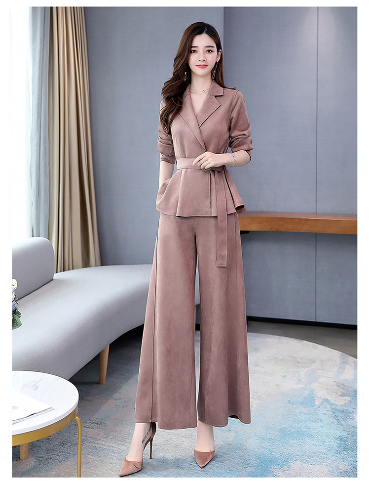 LY-GJ92006春装新款韩版洋气减龄气质百搭鹿皮绒西装两件套