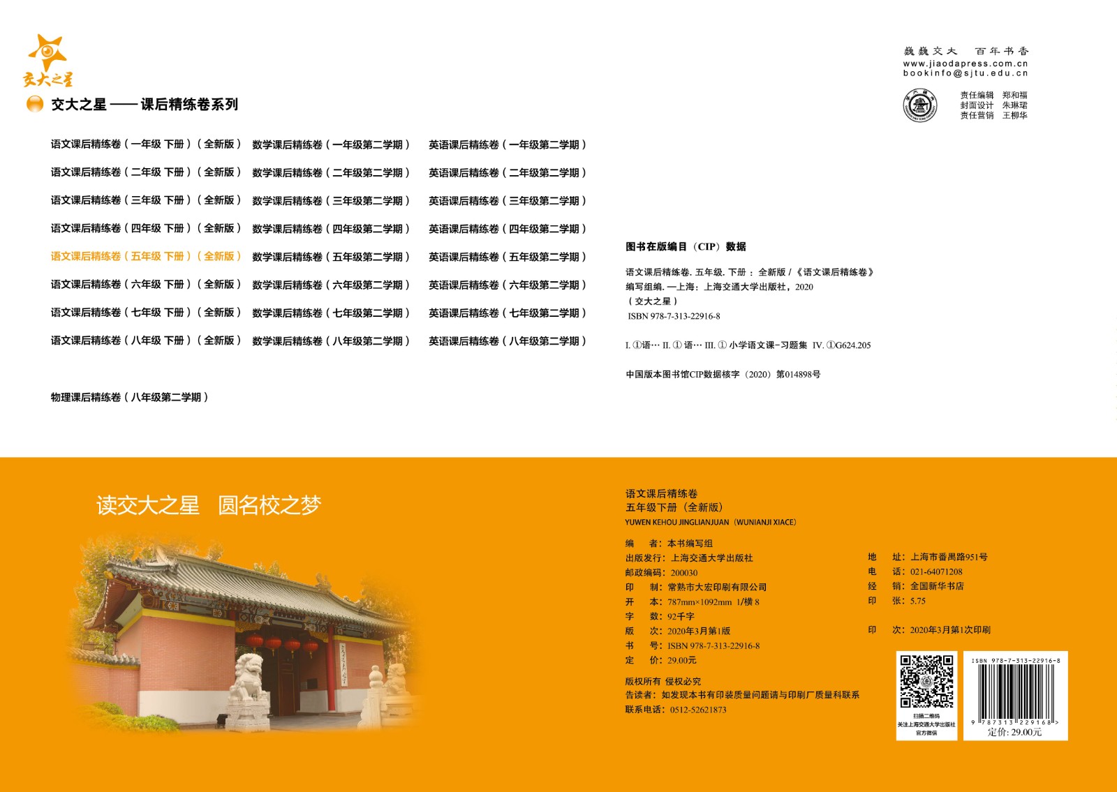 语文课后精练卷 五年级下册(全新版)5年级 交大之星 配套人教版