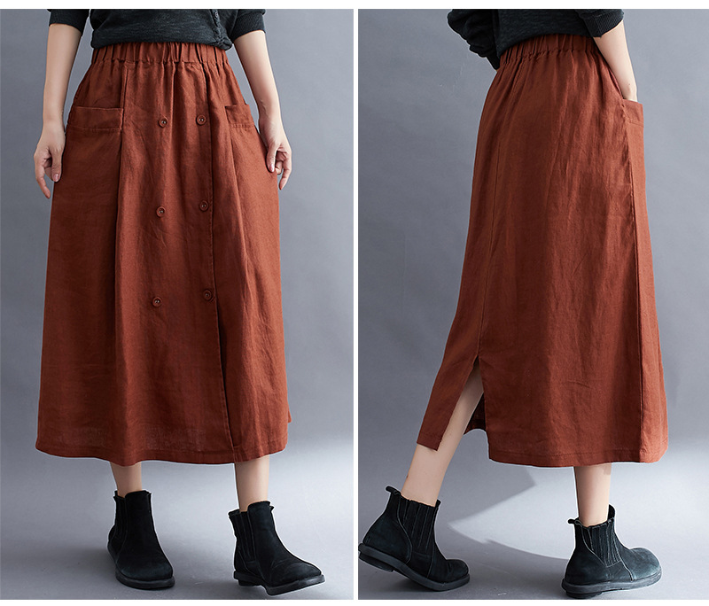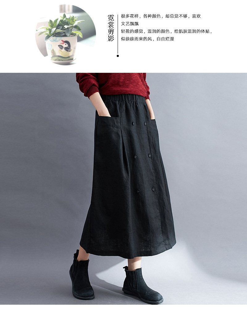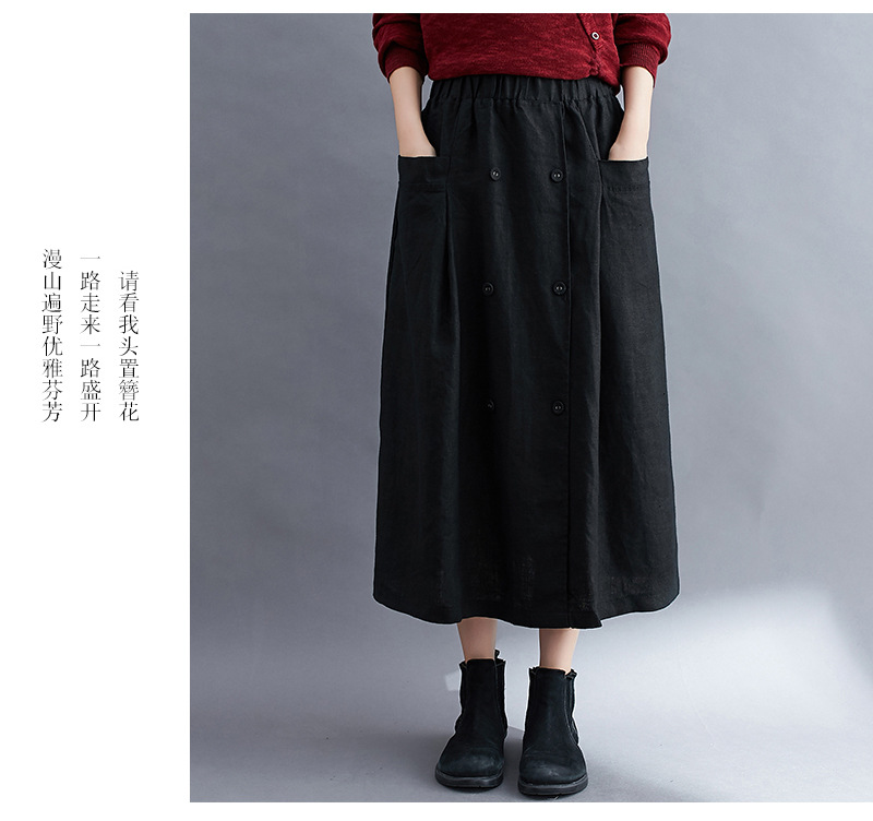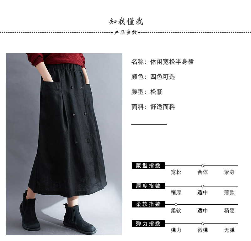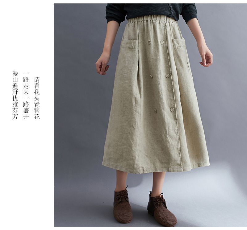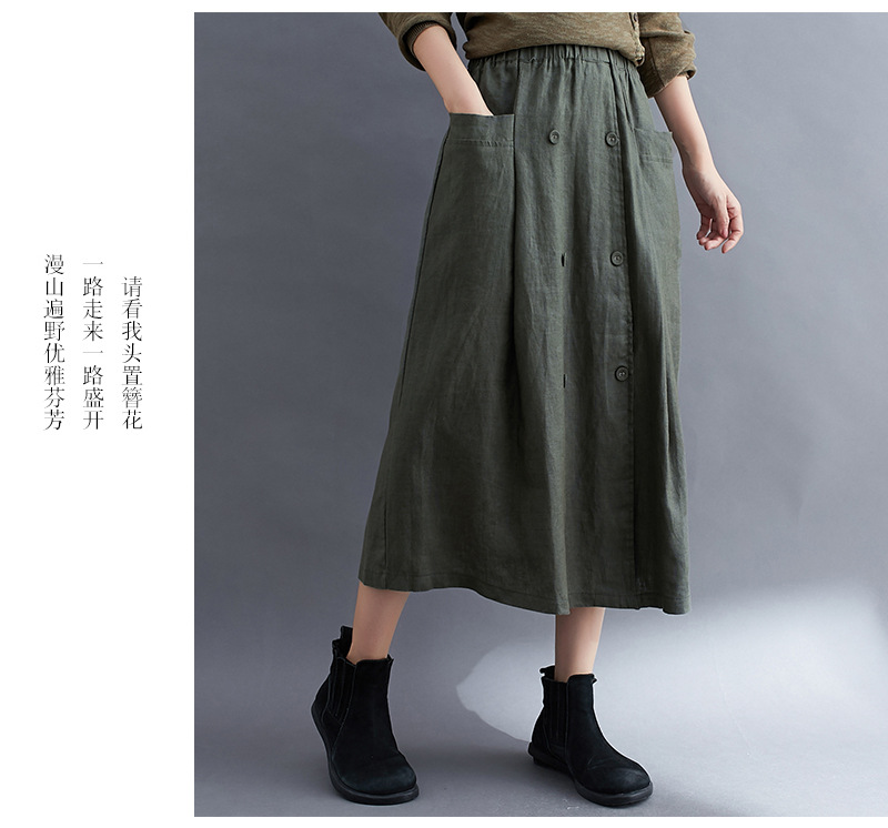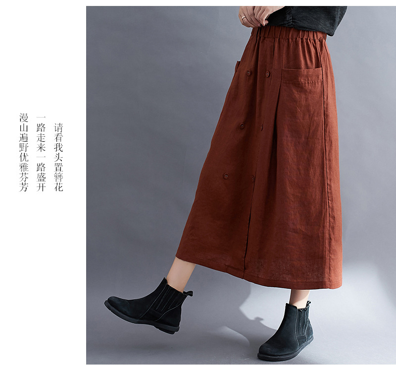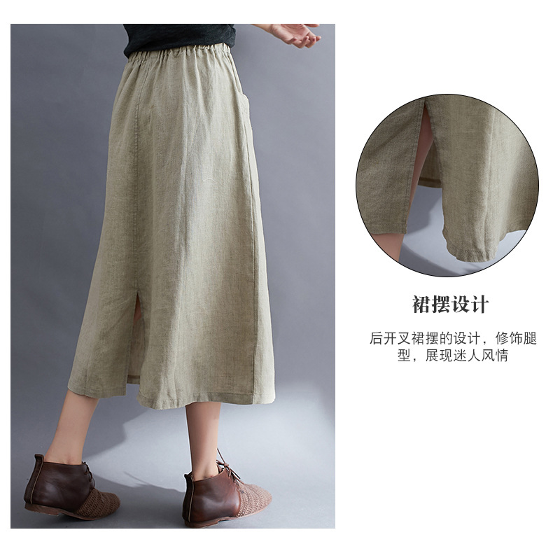 GYH 6012棉麻半身裙休闲宽松高腰纯色显瘦中长款裙