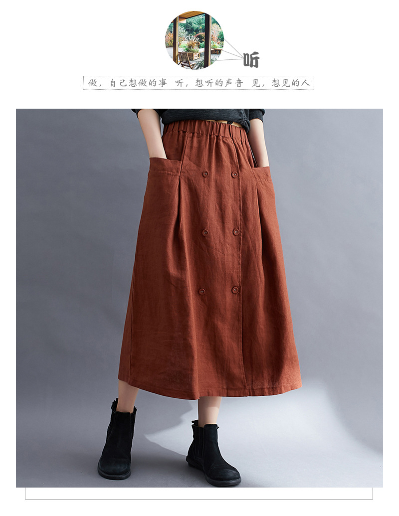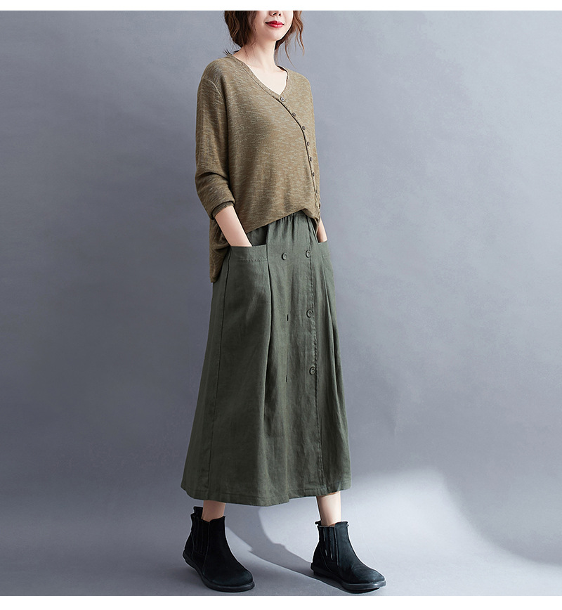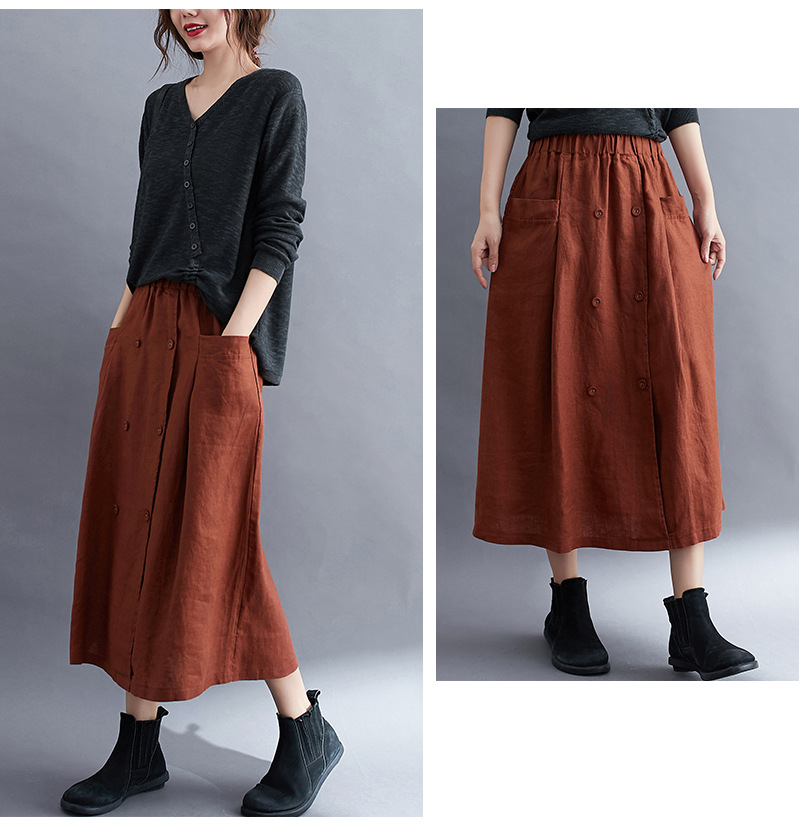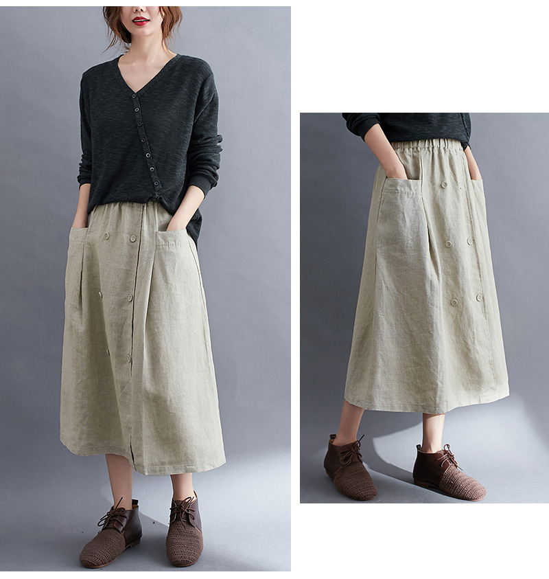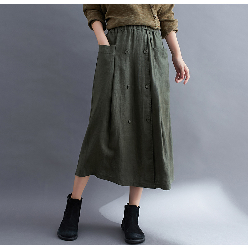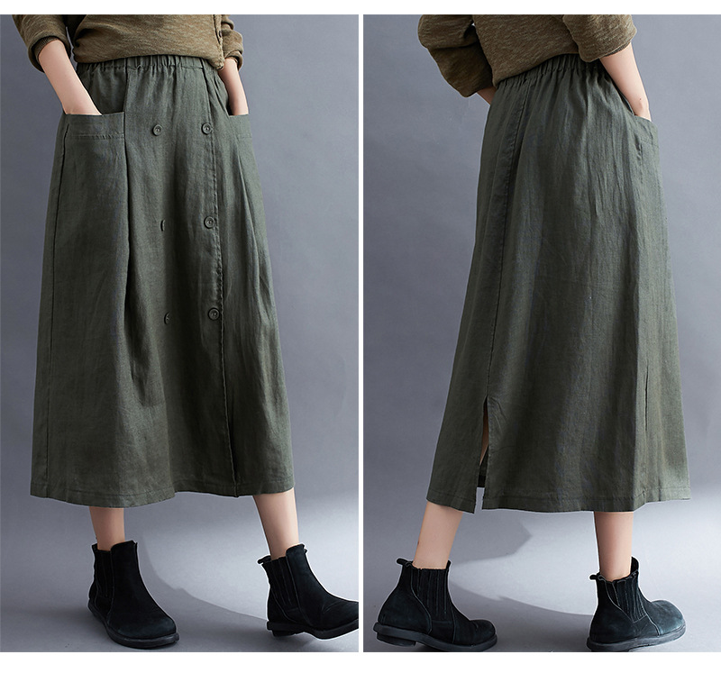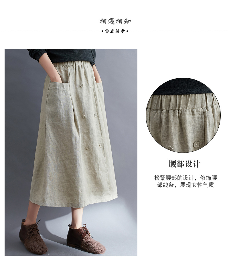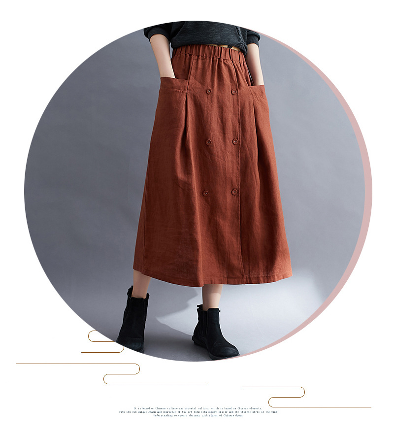 GYH 6012棉麻半身裙休闲宽松高腰纯色显瘦中长款裙
