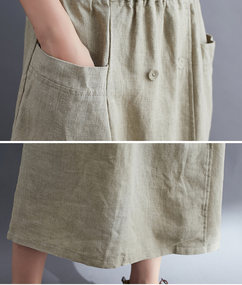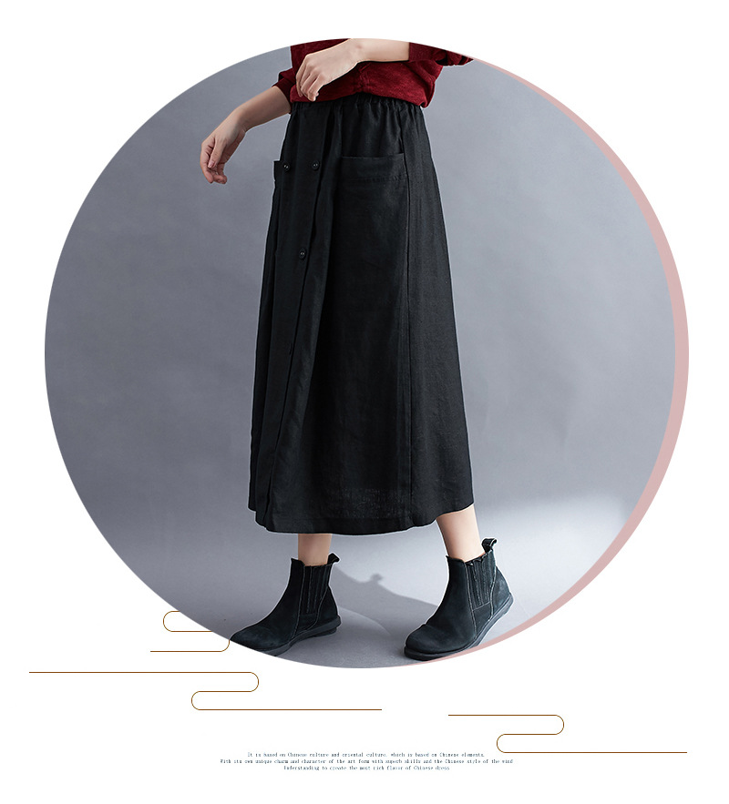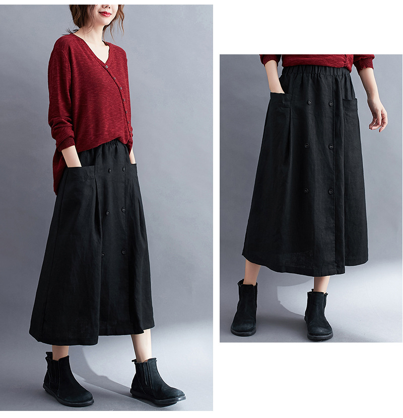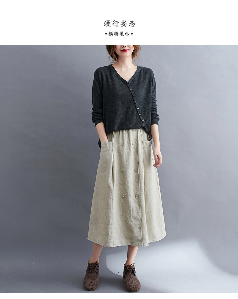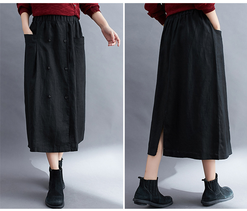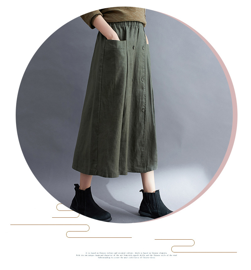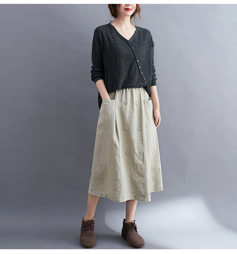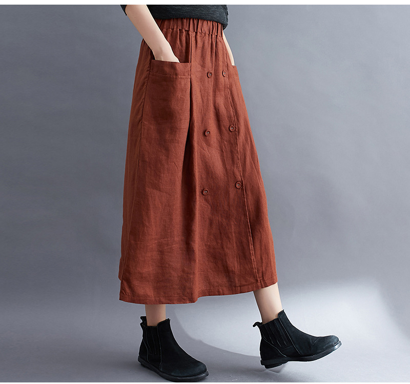 GYH 6012棉麻半身裙休闲宽松高腰纯色显瘦中长款裙
