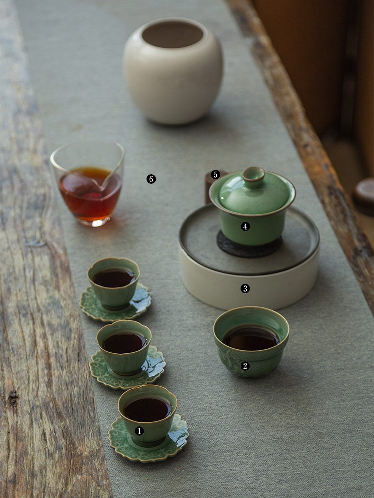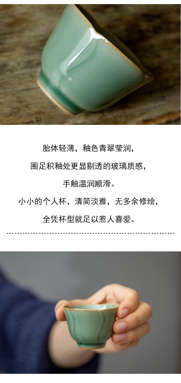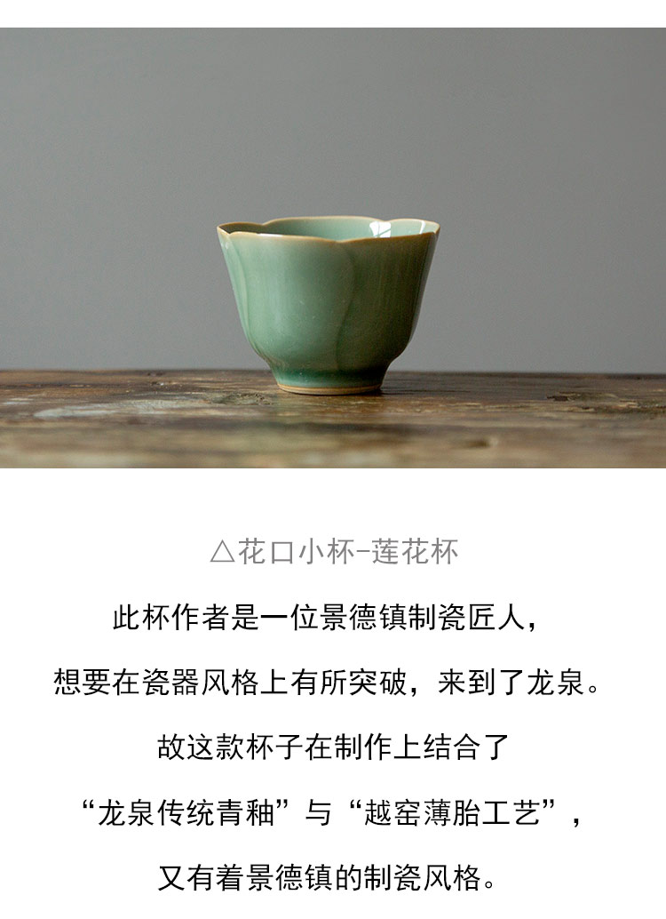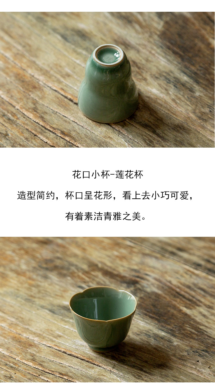 茶香记 龙泉越窑青釉品茗杯聚香20ml小葫芦杯花口薄胎惹人爱茶杯