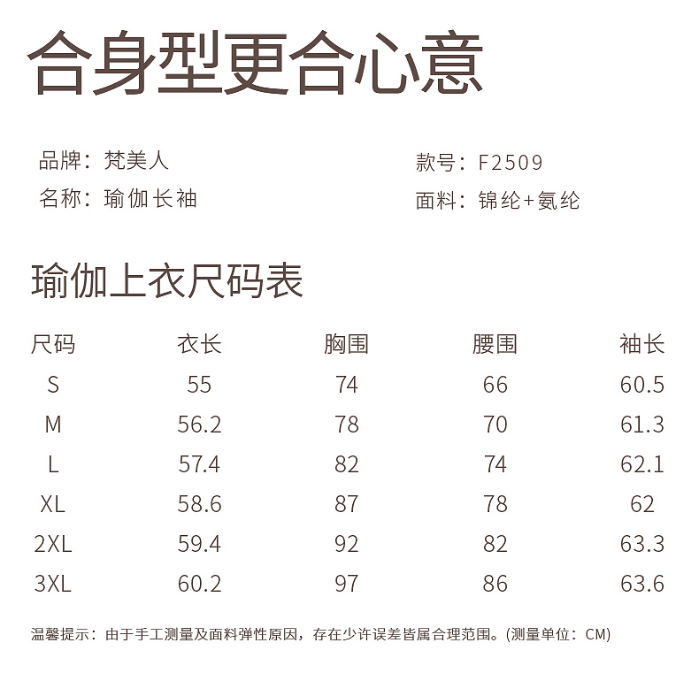 梵美人 F2509 瑜伽长袖 可拆卸胸垫 云糯柔感
