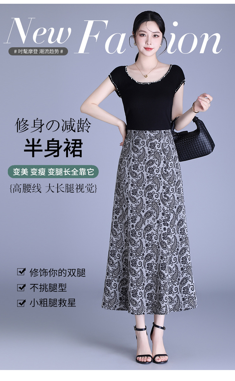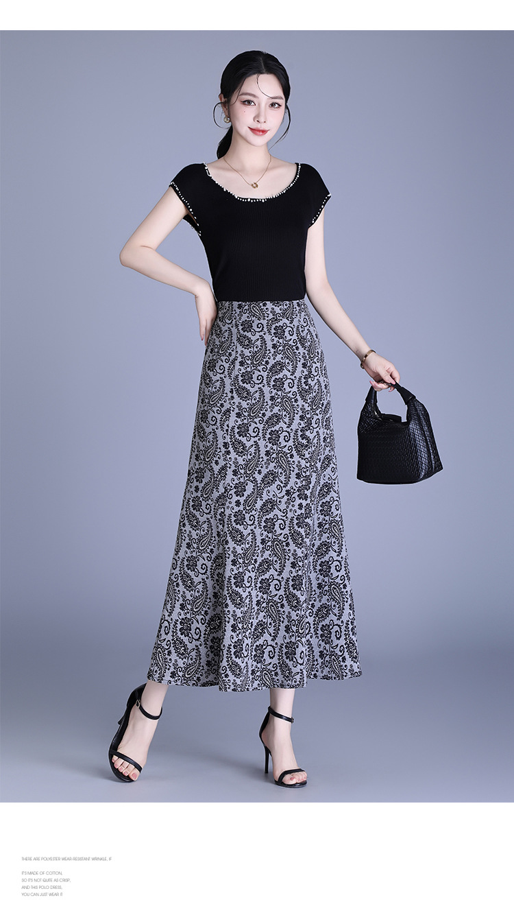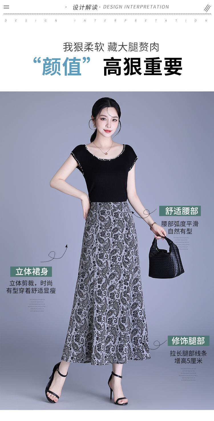 MYX-AS-7331-L时尚印花半身裙2025夏季新款垂感修身显瘦A字裙高腰通勤气质长裙