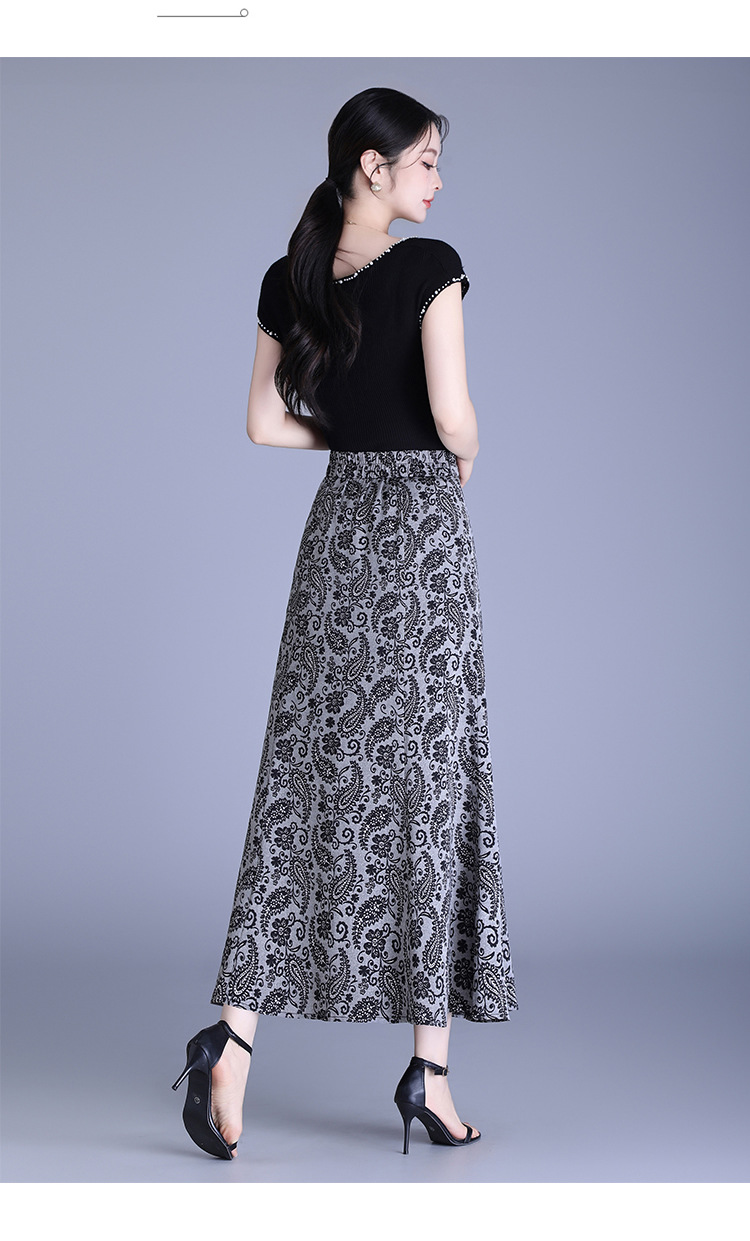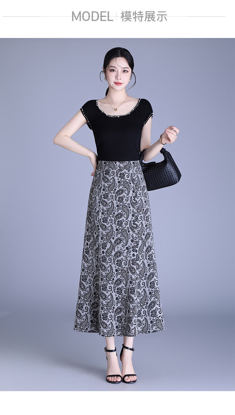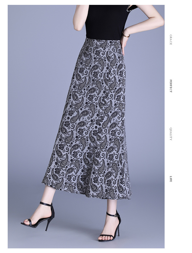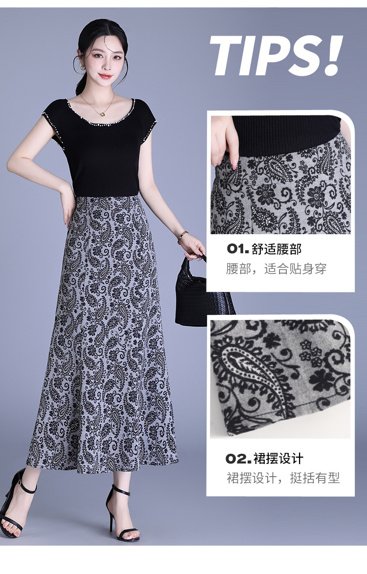 MYX-AS-7331-L时尚印花半身裙2025夏季新款垂感修身显瘦A字裙高腰通勤气质长裙