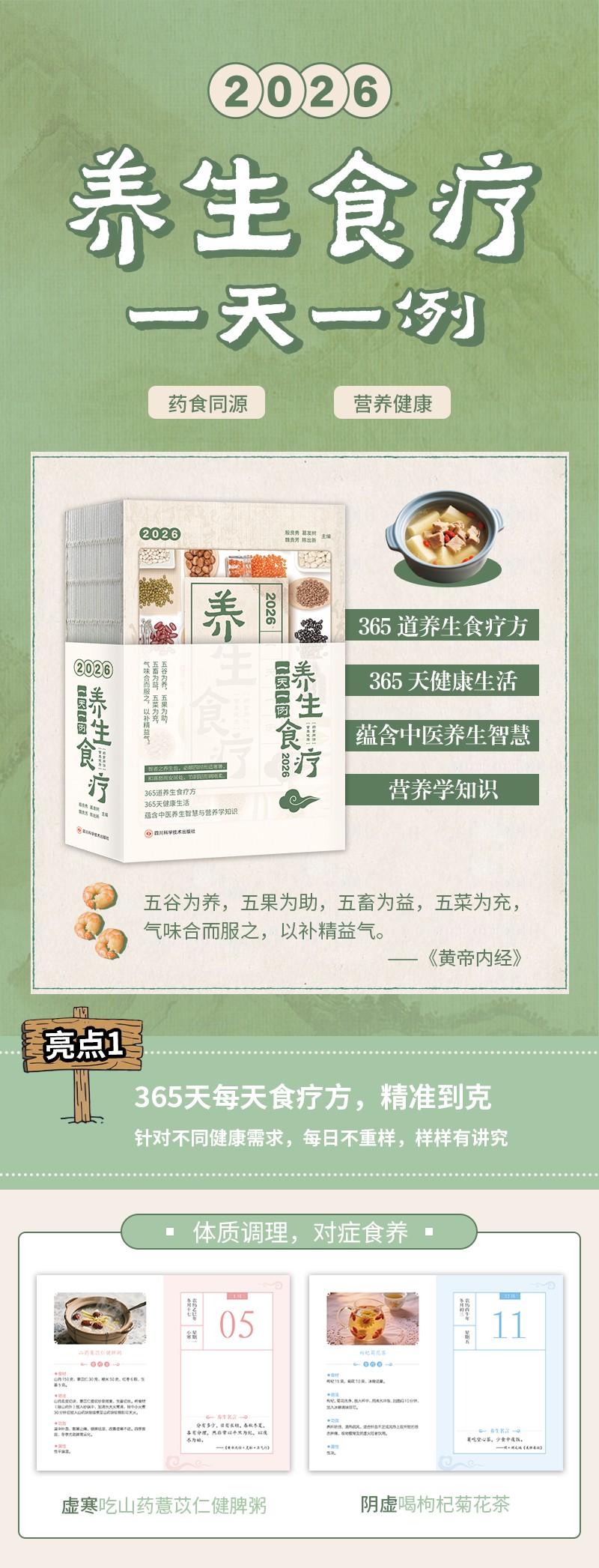 《2026食疗日历:一天一例养生食疗》365日每日食疗方,精准到克