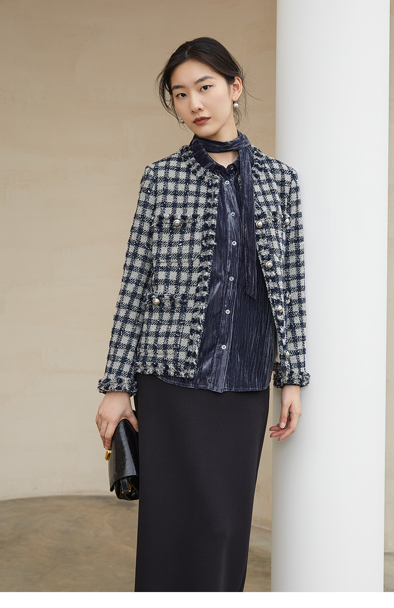 法式温柔风米白色小香风短袖外套女 圆领单排扣短款小西装 小个子通勤百搭开衫