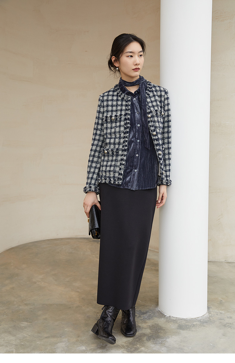 黑色高腰开叉半身长裙 垂感直筒中长裙 通勤知性风秋冬显瘦百搭裙装