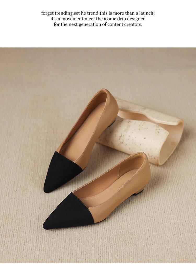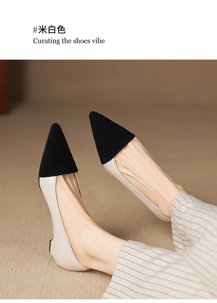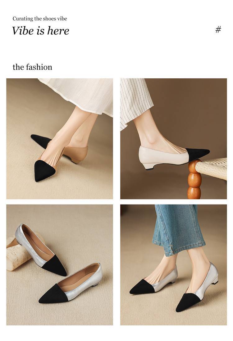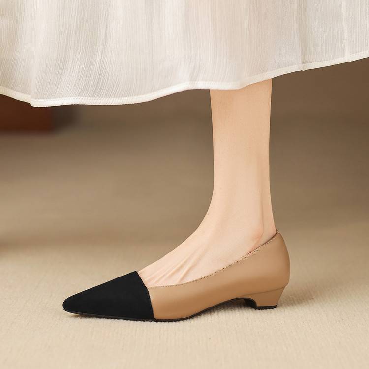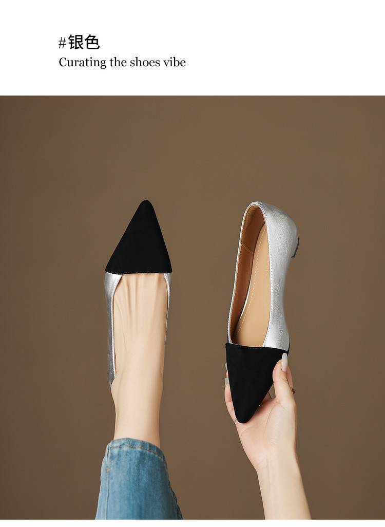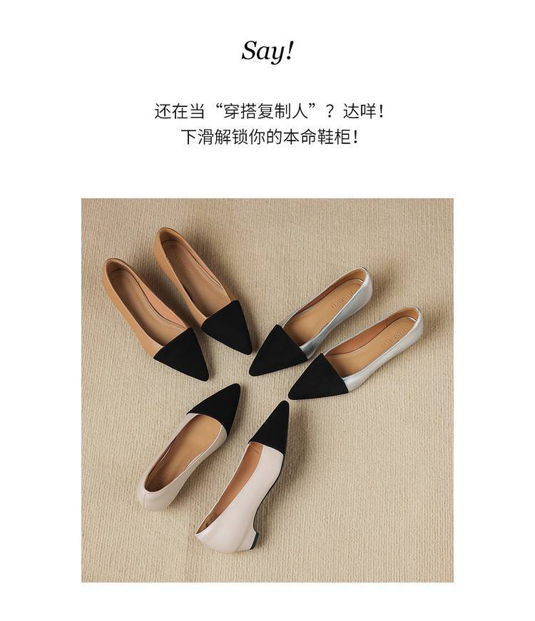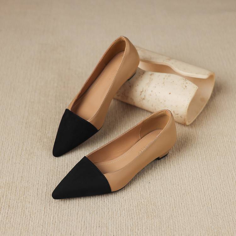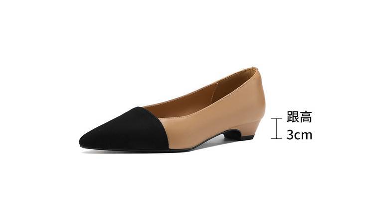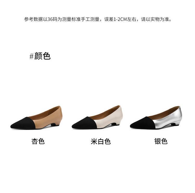 【预售7天】尖头低跟浅口单鞋拼接气质小香风通勤法式女鞋KENXY&A616