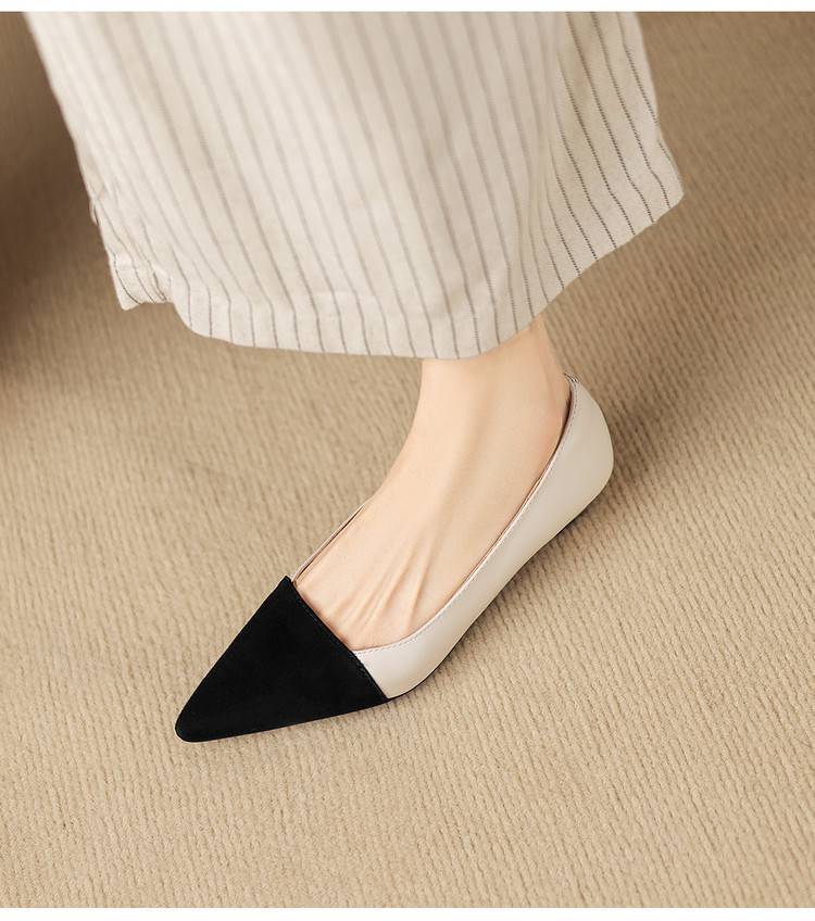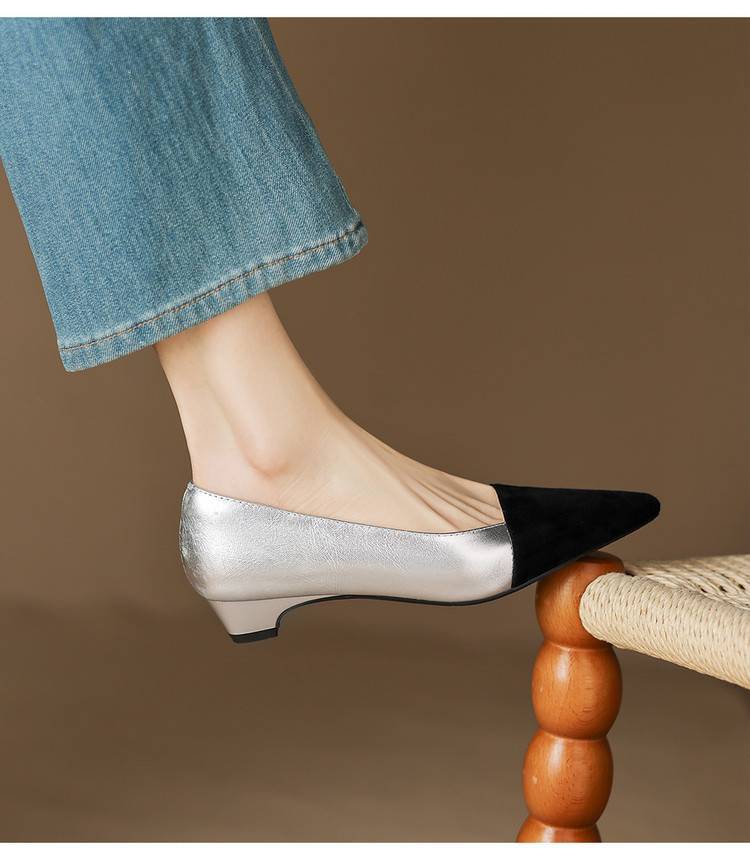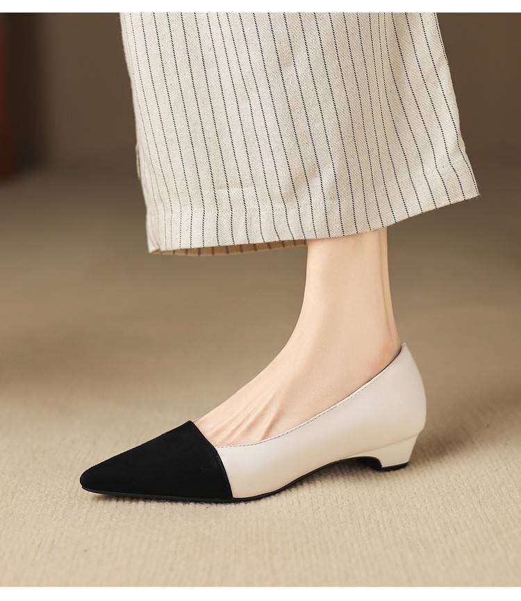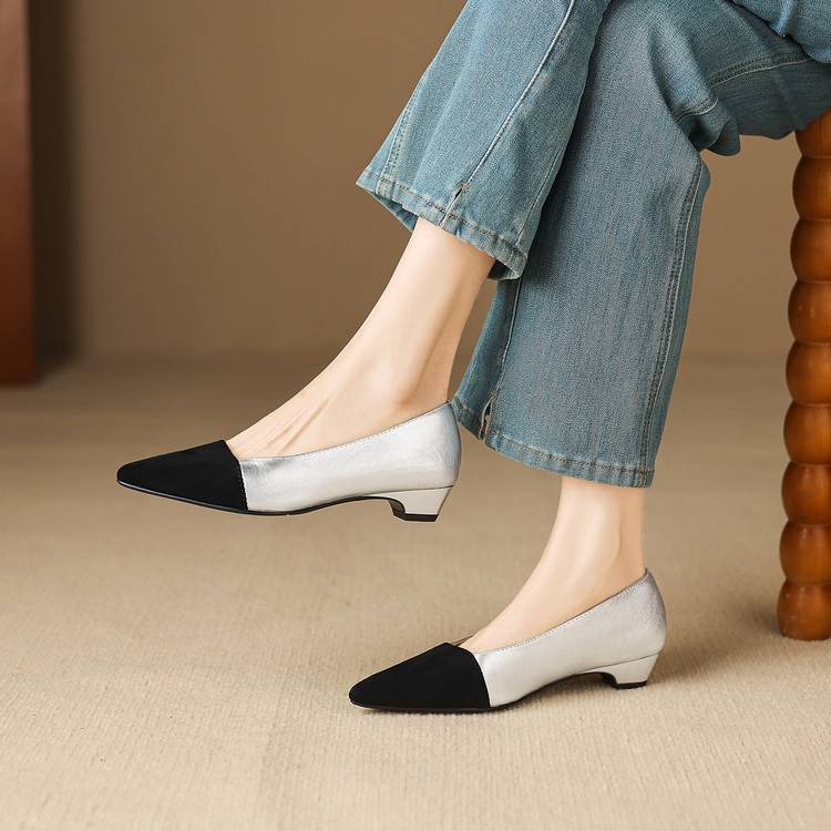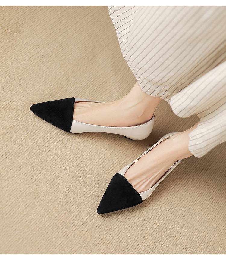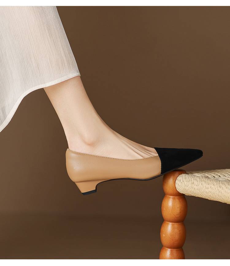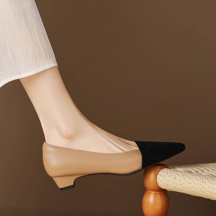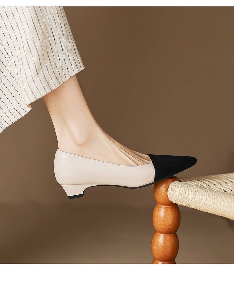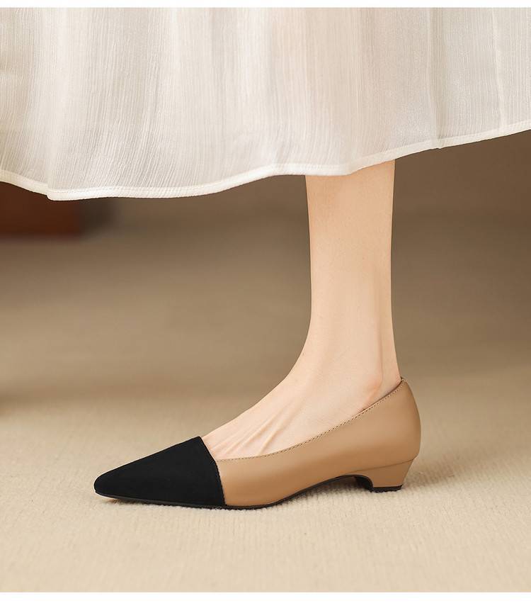 【预售7天】尖头低跟浅口单鞋拼接气质小香风通勤法式女鞋KENXY&A616