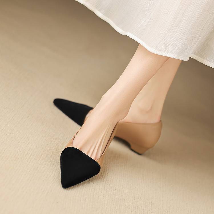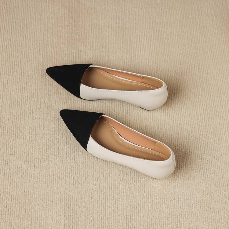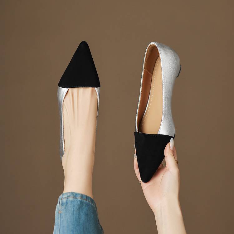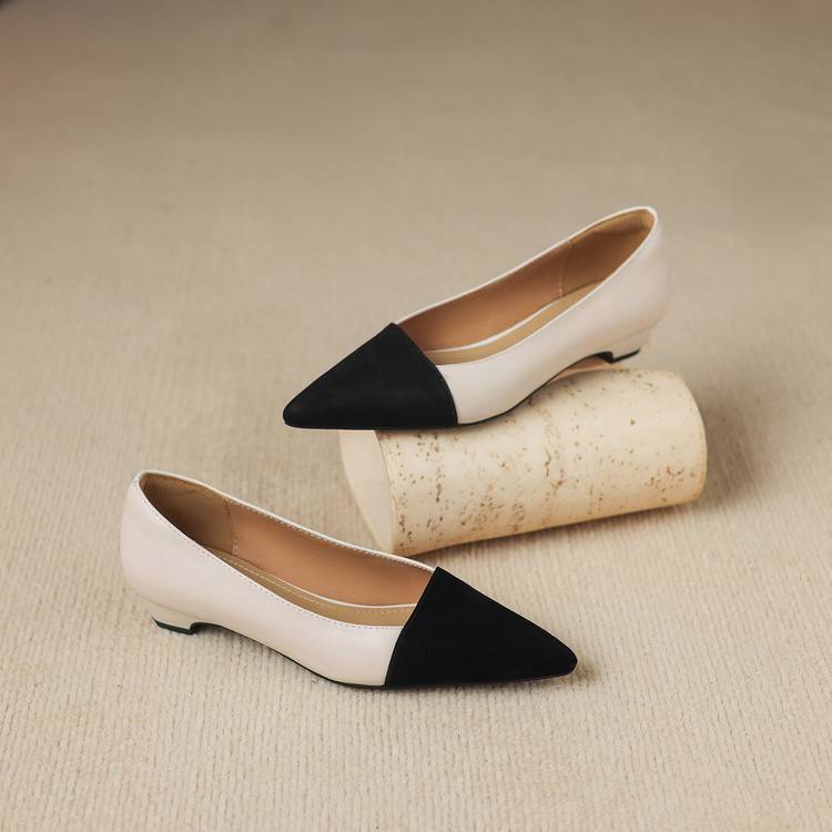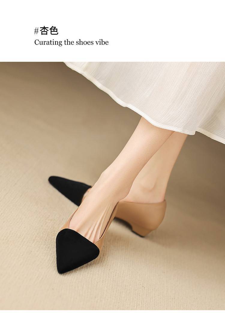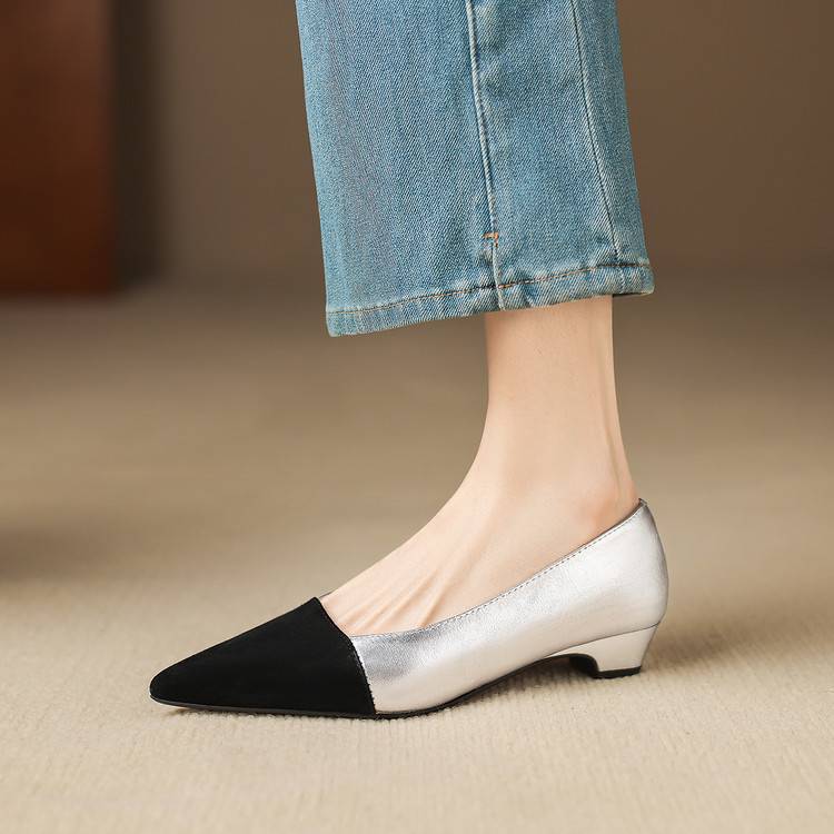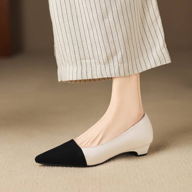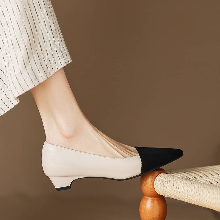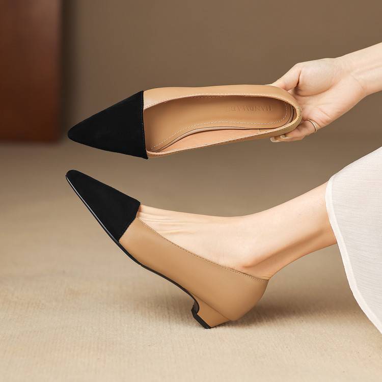 【预售7天】尖头低跟浅口单鞋拼接气质小香风通勤法式女鞋KENXY&A616
