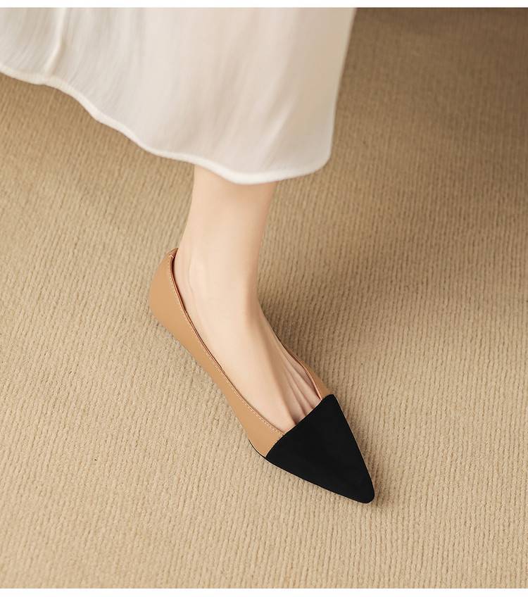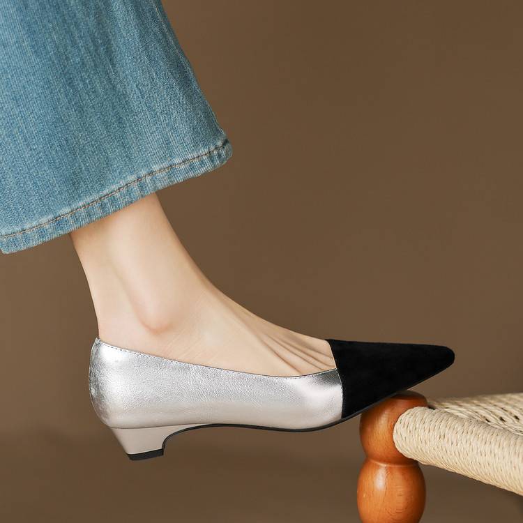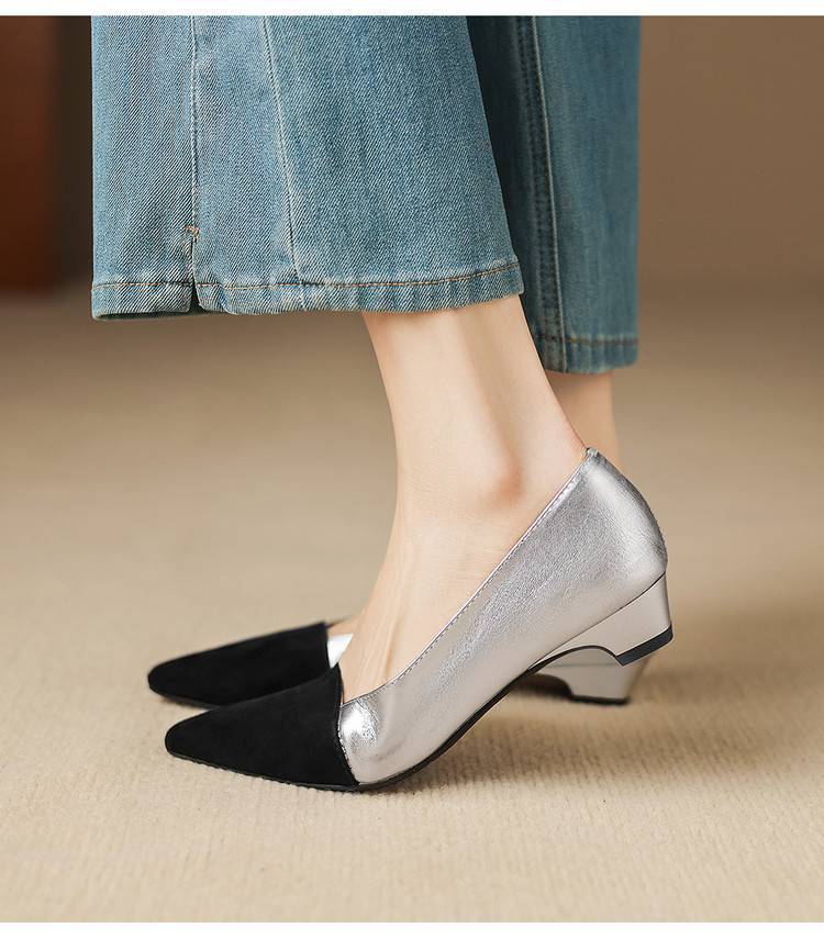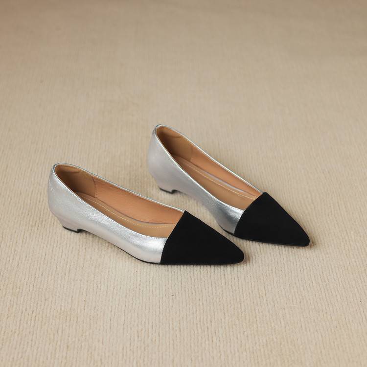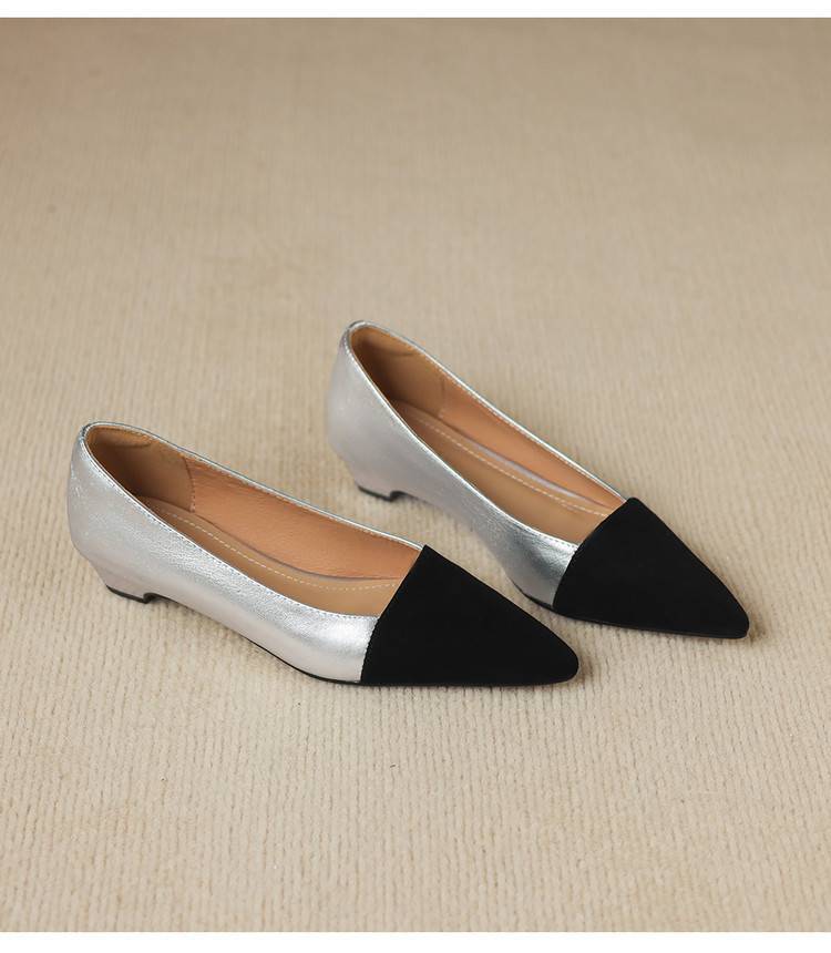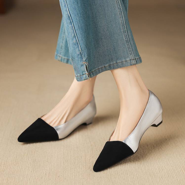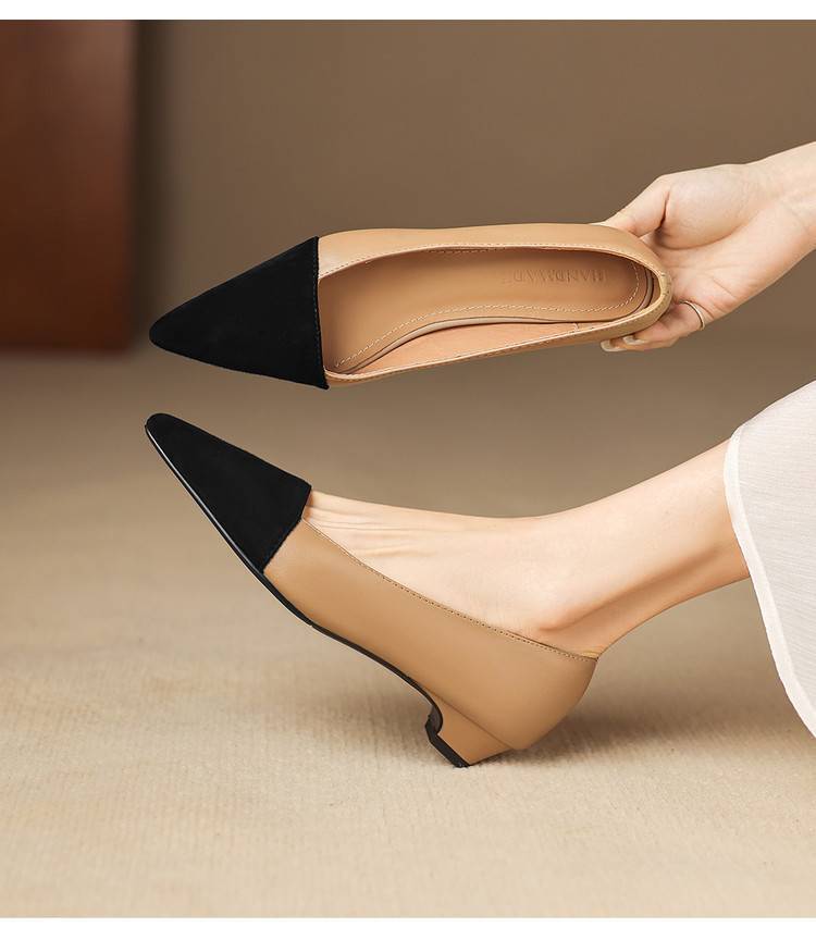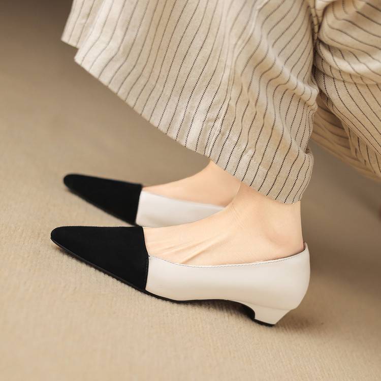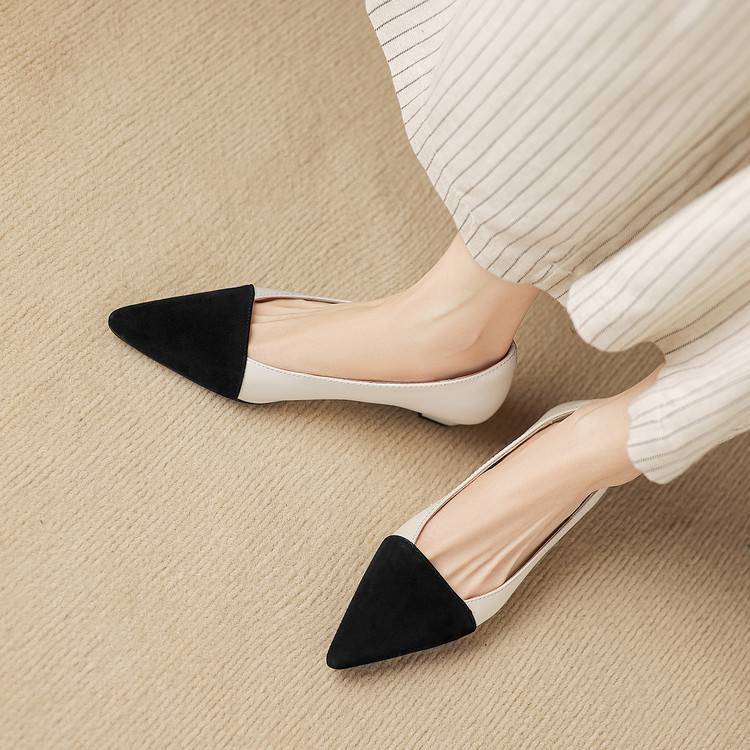 【预售7天】尖头低跟浅口单鞋拼接气质小香风通勤法式女鞋KENXY&A616