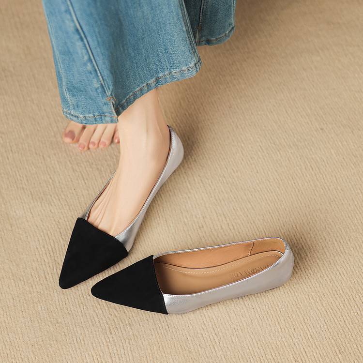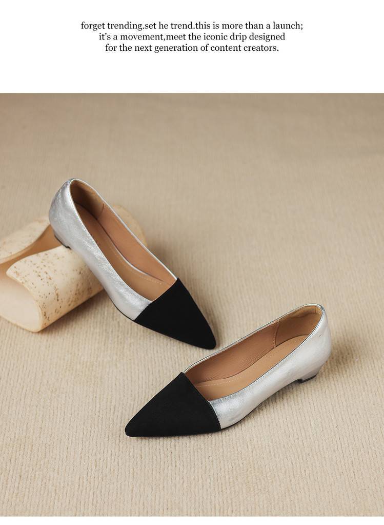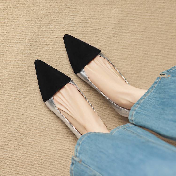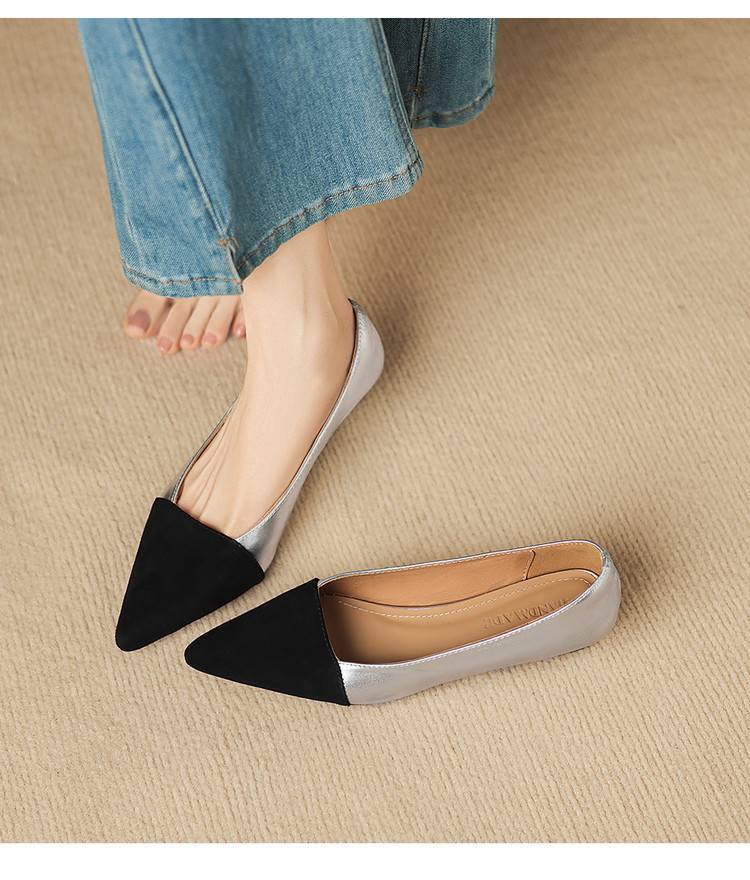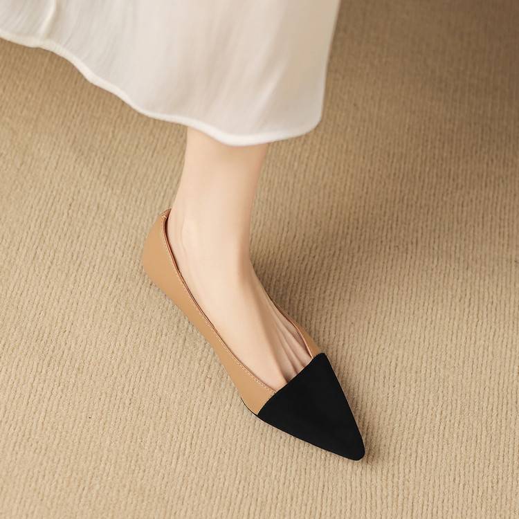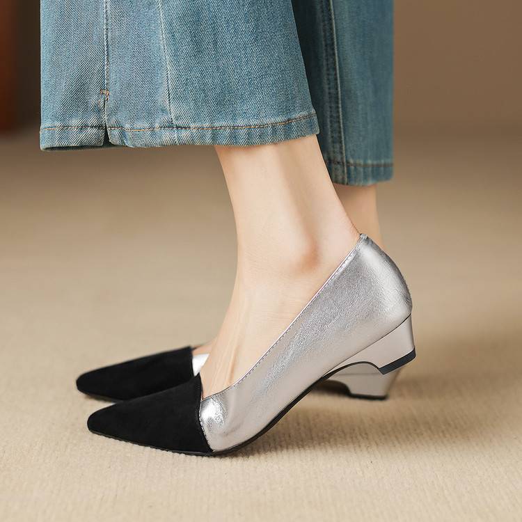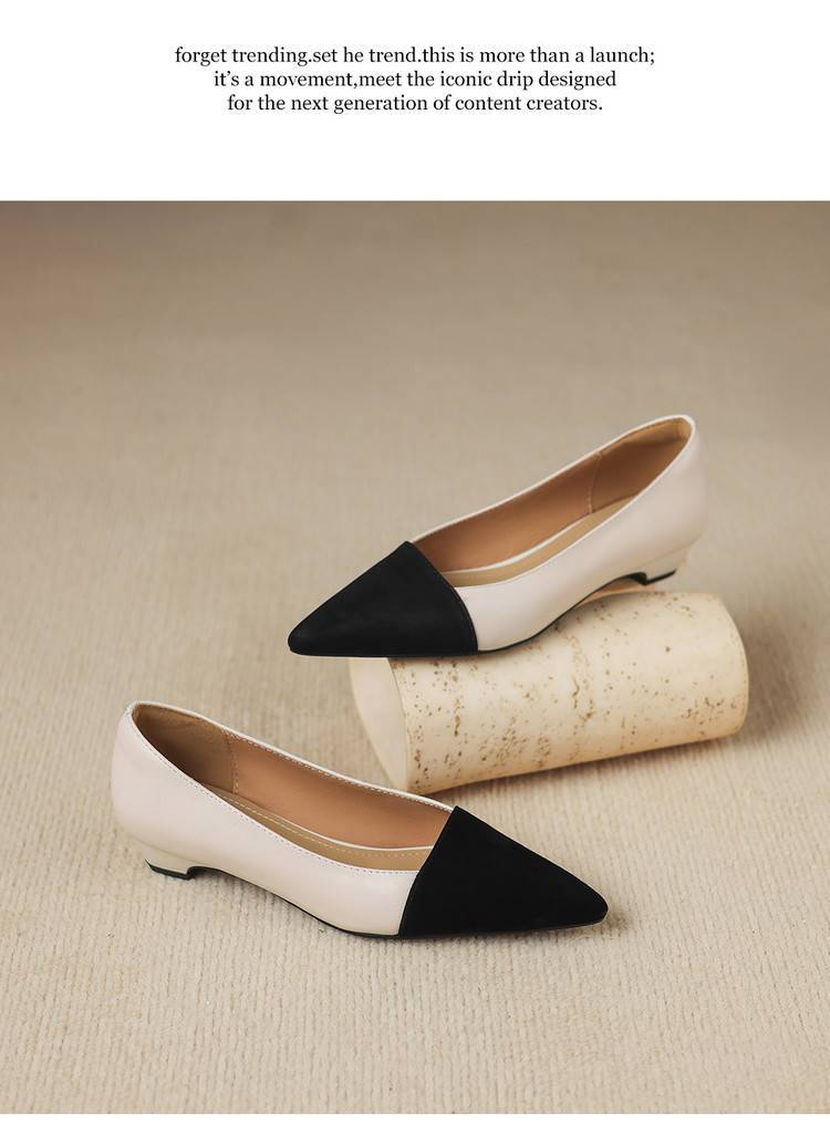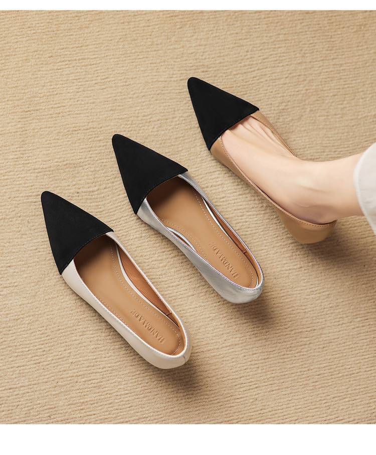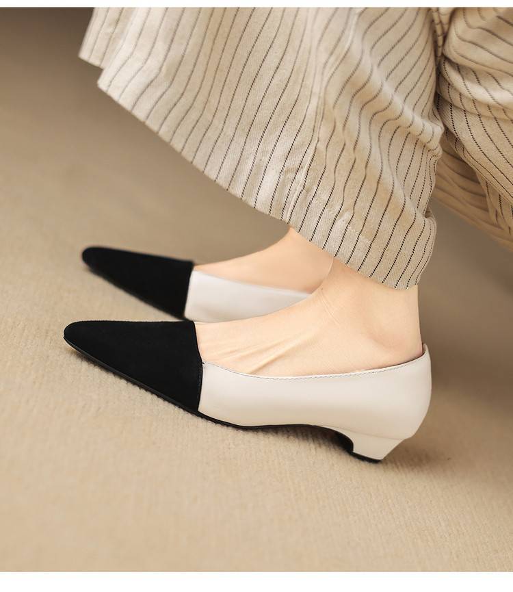 【预售7天】尖头低跟浅口单鞋拼接气质小香风通勤法式女鞋KENXY&A616