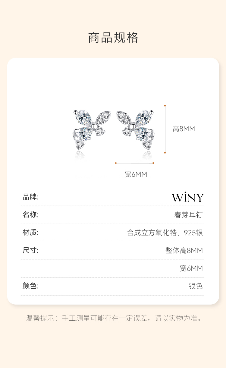 Winy925纯银春芽耳钉送女友闺蜜节日生日礼物