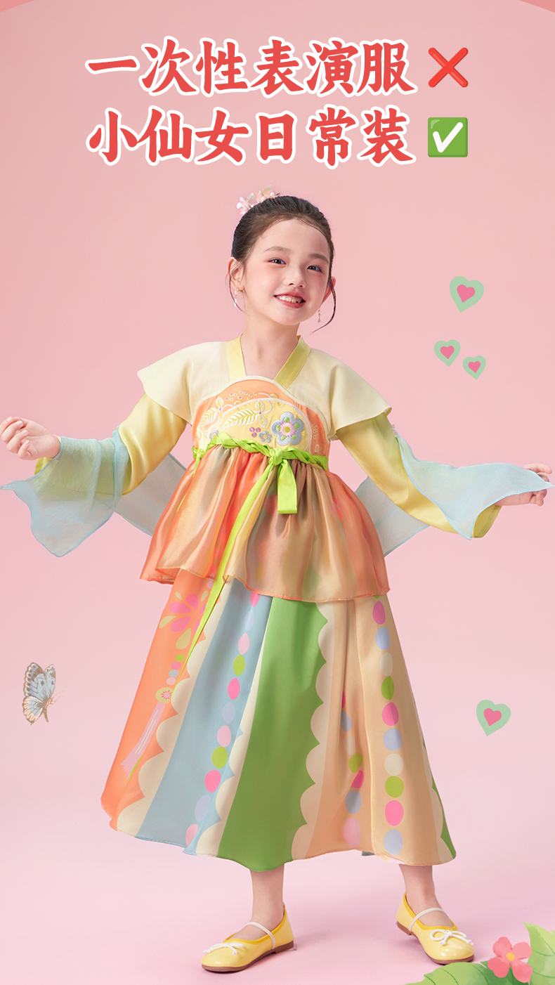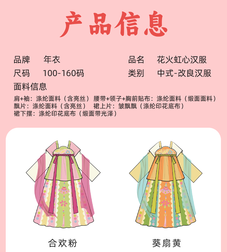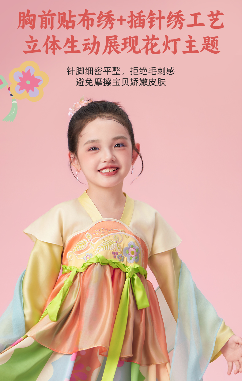 【花火虹心汉服裙】年衣童装汉服裙女童25年秋季新款中式国风改良汉服长袖连衣裙礼服花火虹心汉服裙