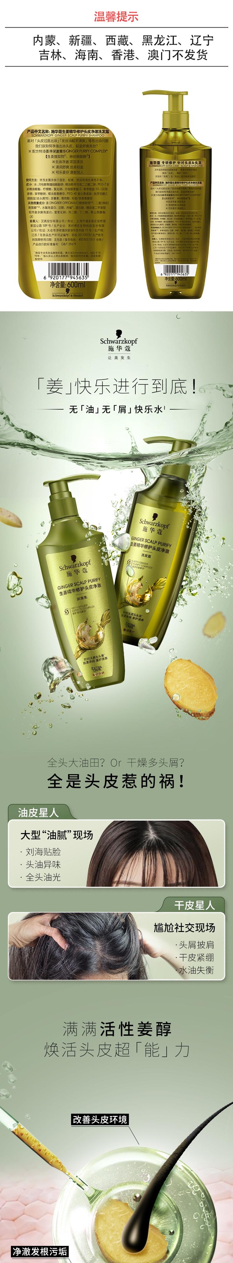 施华蔻 生姜修护头皮净澈(绿)洗发露600mlSHK945635