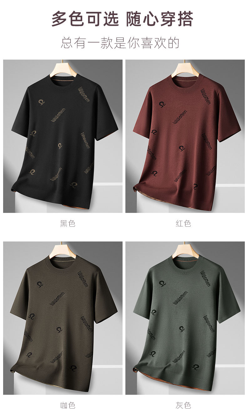 【DDS】大依优型大码男装秋季圆领短袖打底衫时尚休闲商务提花针织衫短袖