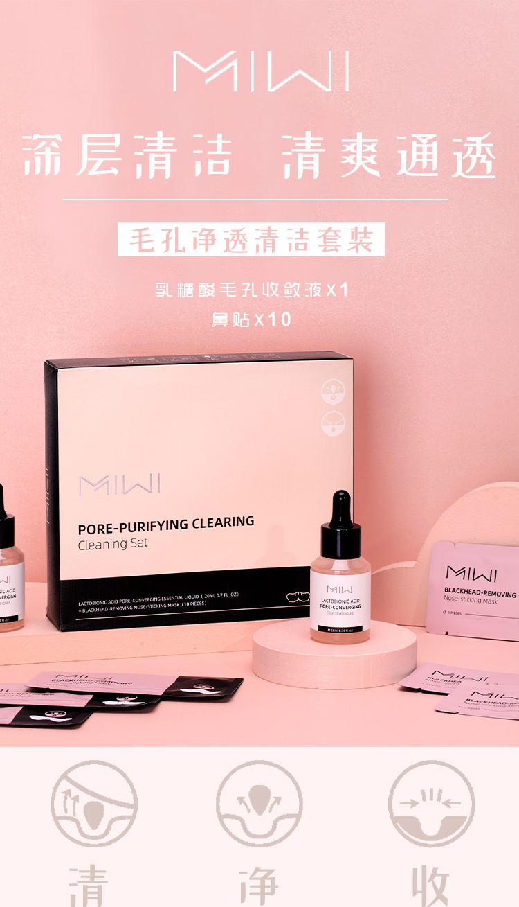【买2送1】深层清洁清爽通透miwi黑头贴毛孔净透清洁套装