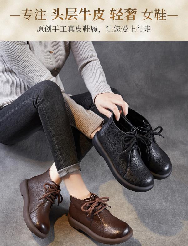 ZM 258769真皮平底马丁靴英伦风复古软底休闲系带及踝短靴 商品图1