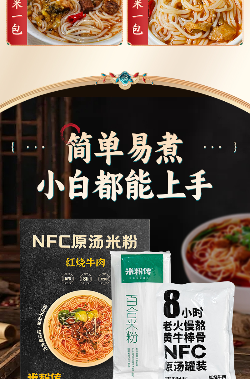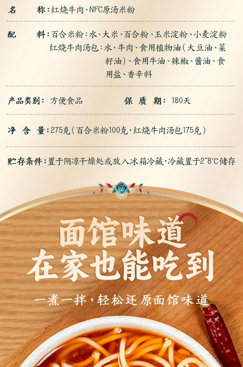 【甄选】NFC红烧牛肉百合米粉牛骨原汤老火慢熬鲜香劲道275g*4盒