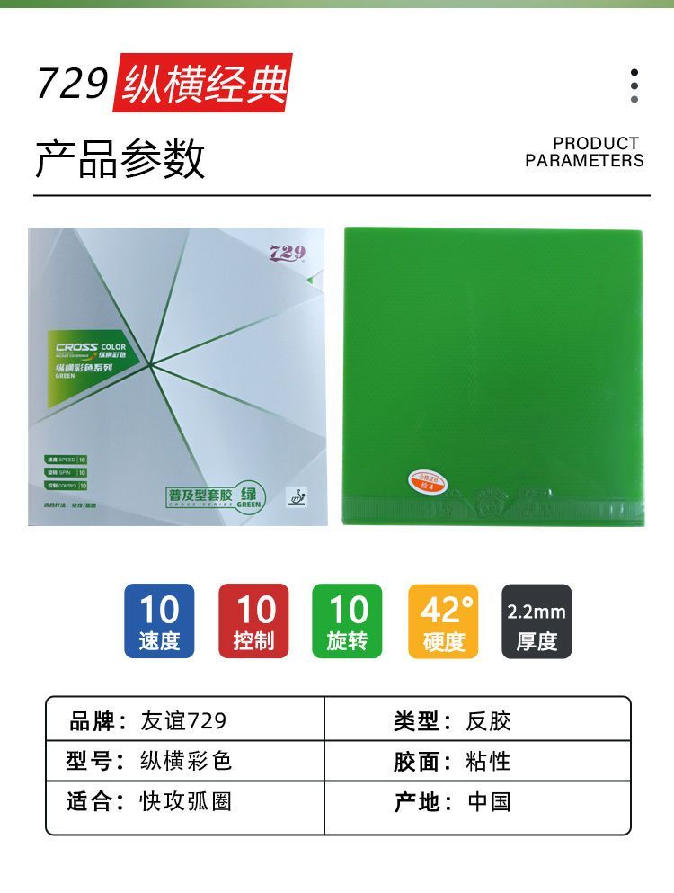 729友谊纵横普及套训练套乒乓球胶皮球拍绿色粘性皮反胶套胶正品