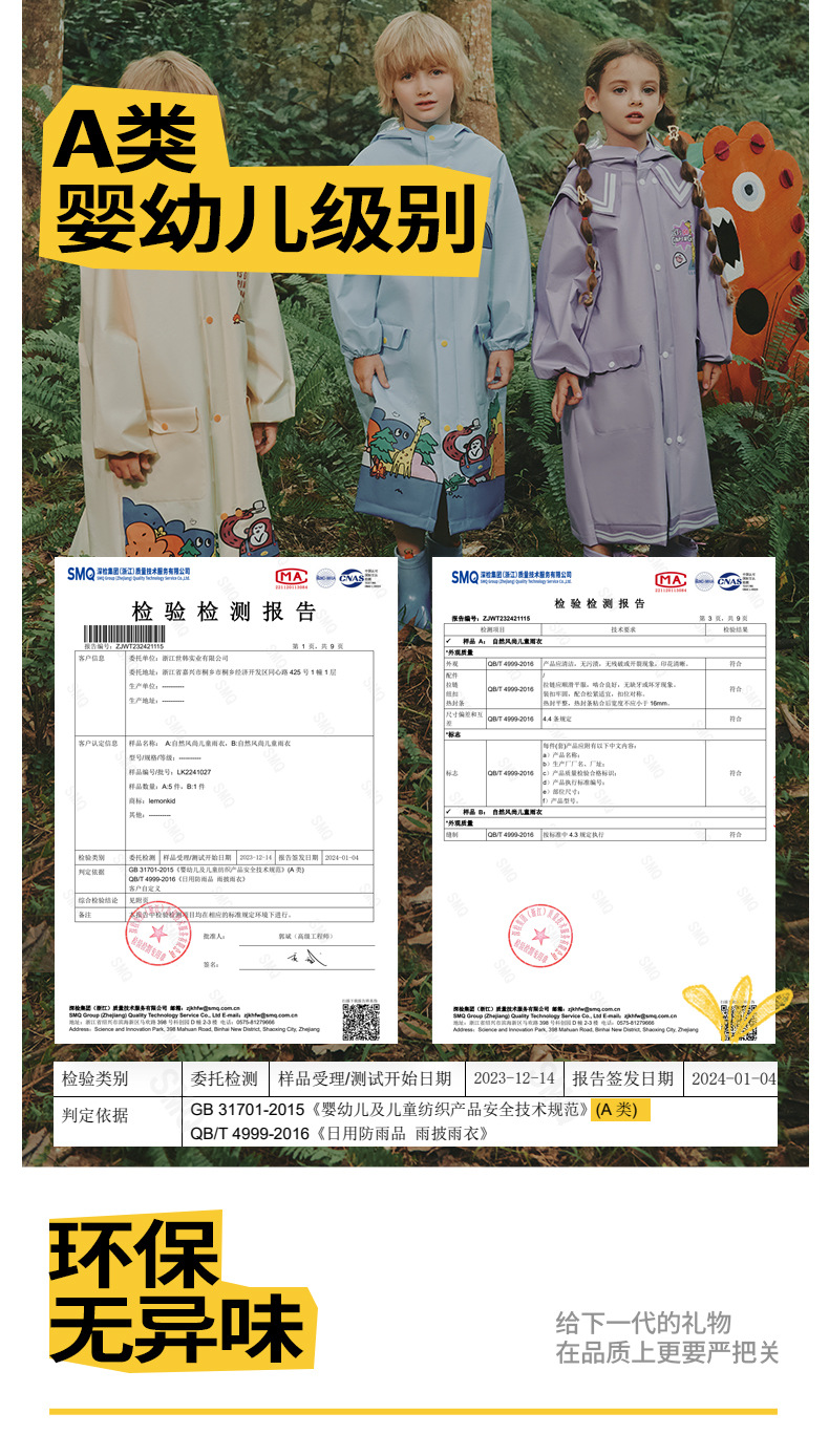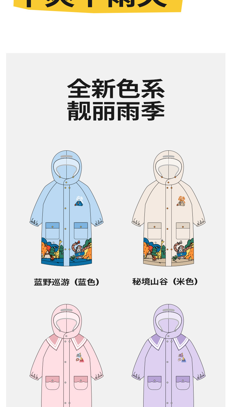 【Lemonkid,一起探索童年生活的乐趣~】柠檬宝宝儿童雨衣 小学生雨披 徒步防水衣 小孩EVA雨衣-QB