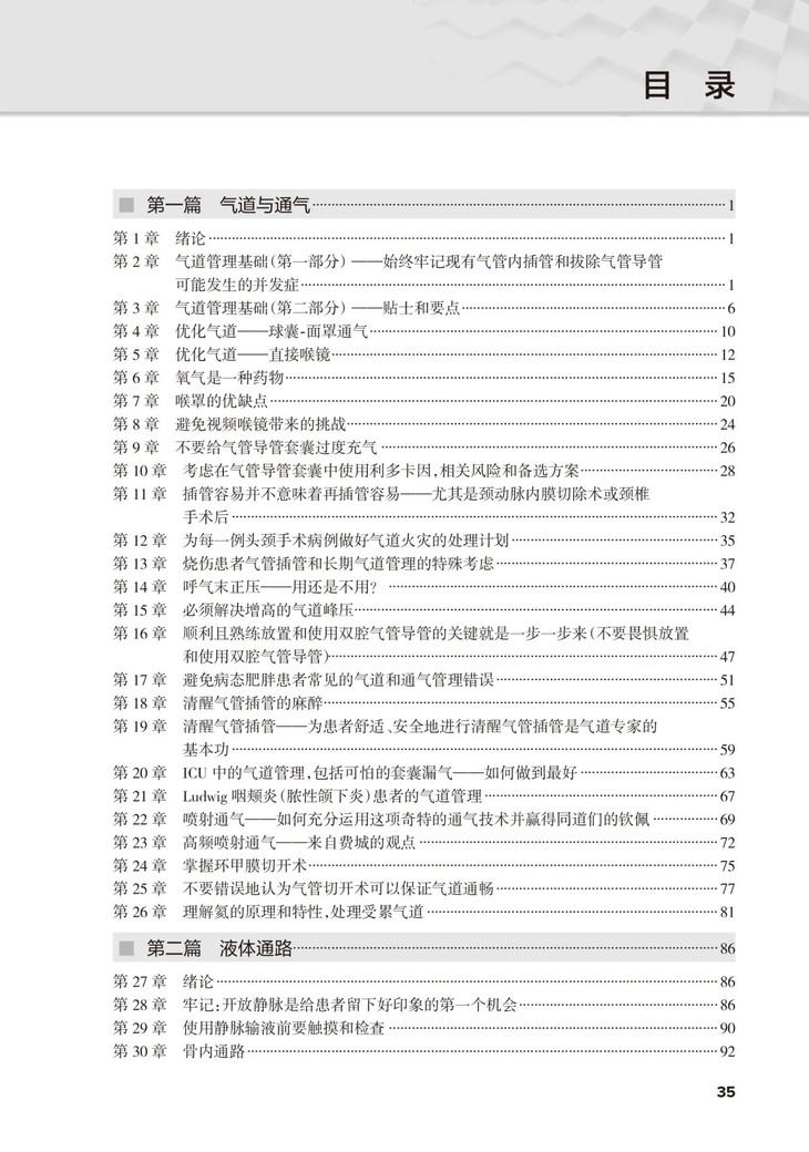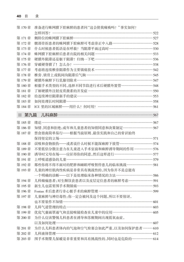◈ 包含294种临床情况的病因、诊断和治疗,全面涵盖整个麻醉学领域,分享气道管理、有创监测和区域麻醉等技术经验,包括从儿科到老年医学科的所有患者。